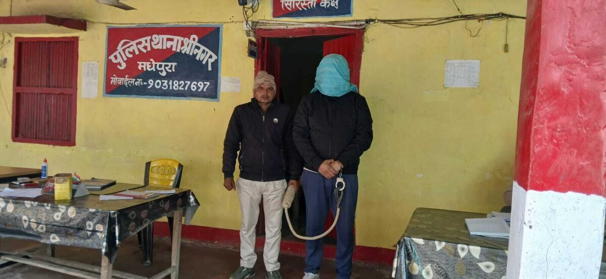 कुमारखंड श्रीनगर थाना के बेला बहियार में कार सहित लोडेड पिस्टल एवं नौ जिंदा कारतूस के साथ महिंद्रा एंड महिंद्रा कंपनी के एरिया कलेक्शन मैनेजर को श्रीनगर थाना पुलिस ने गिरफ्तार कर लिया है. गिरफ्तार मैनेजर की पहचान बेला सदी वार्ड संख्या दो निवासी रितेश कुमार झा उर्फ भानु झा के रूप में हुई है. जानकारी के अनुसार शनिवार की संध्या बेला बहियार में कार खड़ी कर पिस्टल लहराहे युवक को ग्रामीणों ने देख लिया एवं इसकी सूचना थानाध्यक्ष राघवेंद्र नाराय को दे दी. सूचना मिलते ही थानाध्यक्ष पुलिस बल के साथ बेला बहियार पहुंचकर बहियार को घेड़ लिया. इस दौरान पिस्टल लहरहा युवक कार से भागने की तैयारी करने लगा की पुलिस ने मौके पर ही दबोच लिया. इस दौरान उनके पास से लोडेड पिस्टल एवं नौ जिंदा कारतूस के आलावा एक लैपटॉप एवं मोबाइल फोन को जब्त कर लिया. पकड़ाये युवक से पूछताछ की गई तो उन्होंने अपना नाम रितेश कुमार झा उर्फ भानु झा ग्राम बेलासदी वार्ड नंबर -02 बताया. मौके पर पुलिस जब्त महिंद्रा कार बीआर 02 पीए 7499 समेत लोडेड पिस्टल एवं नौ जिंदा कारतूस के साथ-साथ लैपटॉप एवं मोब्बिले फोन के साथ उन्हें थाना लाया. बताया जाता है कि गिरफ्तार रितेश कुमार झा उर्फ भानु झा एवं मनेश्वर झा समेत बाबु साहब, आमोद झा, कुमोद झा के बीच 2.750 डिसमिल जमीन को लेकर पूर्व से विवाद चल रहा है. इसे लेकर आरोपित रितेश कुमार भानु झा एवं मनेश्वर झा समेत बाबु साहब, आमोद झा, कुमोद झा के दरवाजे पर पहुंच कर पिस्टल से फायर किया था. इसकी विधिवत सूचना थाना को दी गयी. सूचना के बाद थाना पुलिस उसकी रेकी कर रहा था. इसी बीच शनिवार की शाम लोडेड पिस्टल एवं कारतूस के साथ बहियार स्थित खेत पर पहुंच गये और इसकी सूचना थानाध्यक्ष को मिल गयी. सूचना मिलते ही थाना पुलिस बेला सदी बहियार की घेराबंदी कर आरोपित को गिरफ्तार कर लिया. बता दें कि रितेश कुमार झा उर्फ भानु झा महिंद्रा एंड महिद्रा मोटर कटिहार में एरिया कलेक्शन मैनेजर के रूप में पदस्थापित हैं और कटिहार स्थित बेगना नवनीत नगर वार्ड संख्या-24 में रहते है. समय-समय पर पैतृक गांव बेला सदी स्थित जमीन जायदाद की देख भाल भी करते रहते हैं. इस संबंध में थानाध्यक्ष ने बताया कि गिरफ्तार युवक के विरुद्ध थाना कांड संख्या-09/26 धारा 25(1-बी)ए/26 के तहत दर्ज कर न्यायिक हिरासत में मंडल कारा मधेपुरा भेज दिया गया है.