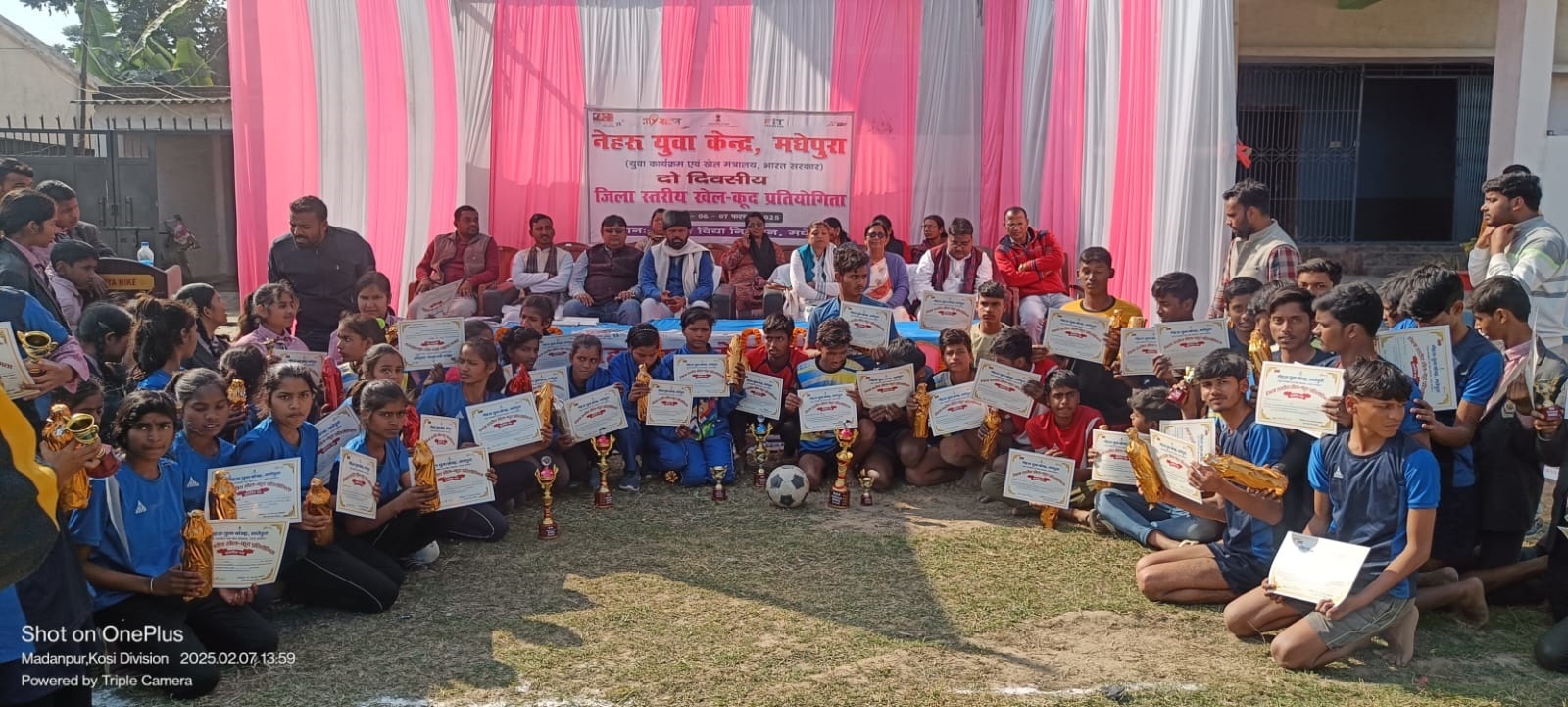 एनवाईके द्वारा आयोजित जिला स्तरीय खेलकूद प्रतियोगिता का समापन- मधेपुरा नेहरू युवा केंद्र द्वारा आयोजित दो दिवसीय जिला स्तरीय खेलकूद प्रतियोगिता का समापन शुक्रवार को माया विद्या निकेतन के मैदान में संपन्न हुआ. कार्यक्रम की अध्यक्षता करते हुए नेहरू युवा केंद्र की उपनिदेशक सह जिला युवा अधिकारी हुस्न जहां ने कहा कि नेहरू युवा केंद्र द्वारा लगातार युवाओं के सर्वांगीण विकास के लिए विभिन्न कार्यक्रमों का आयोजन किया जाता है. इसी कड़ी में खेल-कूद प्रतियोगिता भी आयोजित की गई है. उन्होंने युवाओं से अपील किया कि वह नेहरू युवा केंद्र की विभिन्न गतिविधियों में बढ़-चढ़कर हिस्सा लें. -न जीतने पर इतरायें और न हारने पर घबड़ायें- ठाकुर प्रसाद महाविद्यालय मधेपुरा में दर्शनशास्त्र विभागाध्यक्ष डा सुधांशु शेखर ने कहा कि प्रतियोगिता में निष्काम कर्मयोगी की तरह भाग लें. हमें न तो जीतने पर इतराना चाहिये और न हारने पर घबड़ाना चाहिये. उन्होंने कहा कि हमें निरंतर परिश्रम करते रहना चाहिये. यदि हौसले बुलंद हो, तो सीमित संसाधनों में भी बेहतर प्रदर्शन किया जा सकता है. माया विद्या निकेतन की निदेशिका चंद्रिका यादव ने कहा युवा शिक्षा के साथ-साथ खेलकूद की विधाओं में भी सक्रिय रूप से भाग लें. जीवन में सफल होकर समाज एवं राष्ट्र का नाम रौशन करें. -खेलकूद से व्यक्ति के व्यक्तित्व का होता है विकास- पूर्व पार्षद सह सामाजिक कार्यकर्ता ध्यानी यादव ने कहा कि खेलकूद से व्यक्ति के व्यक्तित्व का विकास होता है और आपसी सद्भावना में भी वृद्धि होती है. बीएनएमयू के सीनेट सदस्य रंजन यादव ने कहा कि खेल के माध्यम से हमारे शारीरिक एवं मानसिक दोनों क्षमताओं का विकास होता है. एक अच्छे खिलाड़ी के एक अच्छा नागरिक होने की संभावना अधिक होती है. जिला कबड्डी संघ के संयोजक अरुण कुमार ने कहा कि मधेपुरा के युवाओं ने विभिन्न खेल स्पर्धाओं में अपनी प्रतिभा का परिचय दिया है. -चार सौ मीटर दौड़ में संतोष एवं निशा प्रथम- चार सौ मीटर दौड़ बालक वर्ग में संतोष कुमार प्रथम, नंनद कुमार द्वितीय एवं गौतम कुमार तृतीय स्थान पर रहे. चार सौ मीटर दौड़ बालिका वर्ग में निशा कुमारी प्रथम, रिया कुमारी द्वितीय एवं ख्याति तृतीय स्थान पर रही. बैडमिंटन बालिका वर्ग में सुहानी एवं सुहानी की टीम विजेता तथा अन्नपूर्णा एवं अनिका सिंह की टीम उपविजेता रही. बैडमिंटन बालक वर्ग में अक्षय राज एवं प्रिंस राज की टीम विजेता तथा सोनू कुमार एवं नयन की टीम उप विजेता रही. फुटबॉल बालिका वर्ग में मधेपुरा की टीम ने एक गोल दाग कर विजेता कप पर कब्जा जमाया, जबकि कुमारखंड की टीम उपविजेता रही. फुटबॉल बालका वर्ग में माया विद्या निकेतन की टीम विजेता तथा जयपालपट्टी की टीम उपविजेता र