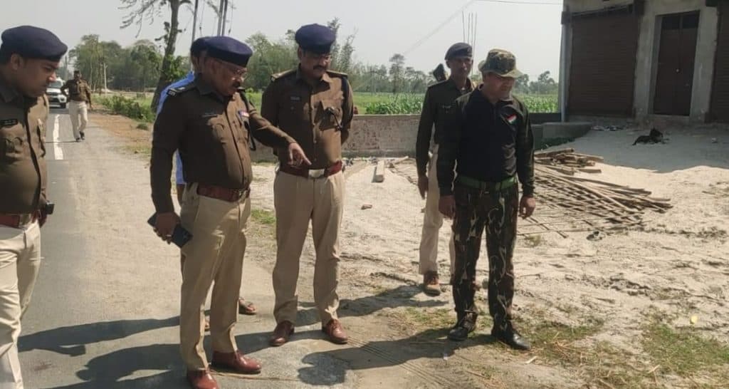 घटनास्थल का निरीक्षण कर रही पुलिस