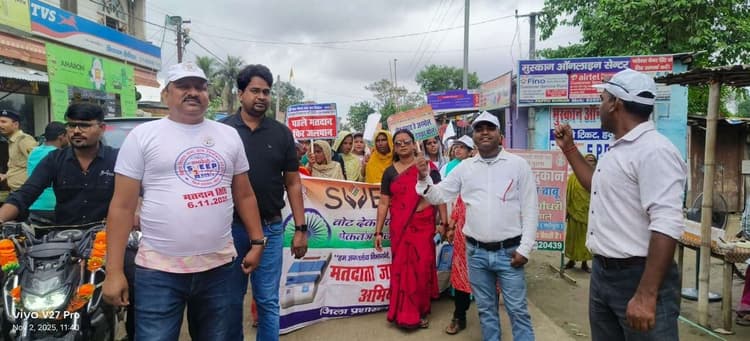 bihar election 2025 : बिहारीगंज. प्रखंड मुख्यालय से स्वीप कार्यक्रम के तहत जीविका द्वारा प्रखंड के सभी जीविका दीदियों ने रविवार को विधानसभा चुनाव को लेकर प्रभात फेरी निकाली. प्रभात फेरी निकाल कर मतदाताओं से अपील किया कि लोकतंत्र के इस महापर्व पर सभी लोग छह नवंबर को अपना मतदान अवश्य करें और एक मजबूत सरकार बनाने में सहभागी बनें. प्रभातफेरी रेलवे स्टेशन से मुख्य बाजार भ्रमण करते हुए दुबारा कार्यालय विश्वकर्मा चौक वापस हुई. इस कार्यक्रम का मुख्य उद्देश्य आगामी चुनाव में मतदाताओं की अधिकतम भागीदारी सुनिश्चित करना और एक जागरूक लोकतंत्र का निर्माण करना है. लोकतंत्र के इस महापर्व के आलोक में बीडीओ अमित कुमार, प्रखंड परियोजना प्रबंधक रंजन कुमार के द्वारा सभी से अपील की गयी. विशेषकर कम मतदान प्रतिशत वाले क्षेत्र में मतदाता जागरूकता अभियान चलाए जाये. प्रखंड अंतर्गत सभी ग्राम संगठनों की मीटिंग में इस पर विशेष चर्चा की जाए. इसमें प्रभात फेरी के माध्यम से मतदाताओं को जागरूक किया जा रहा है. साथ ही यह लोगों से अपील की गयी कि वे लोकतंत्र के इस महापर्व में बढ़-चढ़कर हिस्सा लें. आपका जागरूक निर्णय ही एक मजबूत लोकतंत्र की नींव है. इस कार्यक्रम के मौके पर जीविका के विनेश कुमार बिमल, सीसी सुलेखा कुमारी, रंजीता कुमारी, आनंद और मुस्कान संकुल संघ की जीविका दीदी, जीविका कार्यकर्ता सीएलएफ कोर्डिनेटर विजय कुमार, सीएफ प्रभाष कुमार, बीके नेहा कुमारी, चांदनी कुमारी, रहमती, पिंकी कुमारी सहित सैकड़ों जीविका दीदियां मौजूद थी.
