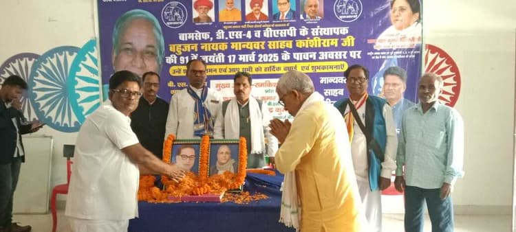उदाकिशुनगंज . बहुजन समाज पार्टी के संस्थापक कांशीराम की 91वीं जयंती बसपा कार्यकर्ताओं ने सोमवार को मनायी. उदाकिशुनगंज मुख्यालय स्थित अंबेडकर पुस्तकालय में कार्यकर्ताओं ने कांशीराम के तैलीय चित्र पर माल्यार्पण करते हुए पुष्पांजलि अर्पित किया. मौके पर मुख्य अतिथि बसपा के प्रदेश अध्यक्ष रामकिशोर पांडेय ने कहा कि कांशीराम साहब गरीबों, दलितों, शोषितों, वंचितों की आवाज थे. उनके शासनकाल में बहन मायावती के मुख्यमंत्री काल में उत्तर प्रदेश का काफी विकास हुआ. मौके पर मधेपुरा -सहरसा जिले के जोन इंचार्ज रविन्द्र कुमार राय ने कहा कि कांशीराम मानव ही नहीं महामानव थे. देशवासियों को कांशीराम साहब के बताये मार्गों पर चलने की जरूरत है. वहीं सुपौल जिले जॉन इंचार्ज सुरेन्द्र राम ने कहा कि कांशीराम देश उन अंतिम पंक्ति के लोगों के लिए प्रेरणास्रोत थे. जो अपनी आवाज बुलंद नहीं कर सकते थे. मौके पर पूर्व जिप सदस्य अमलेश राय, नंदकिशोर दास, दिलखुश पासवान, बालेश्वर राम, लालबहादुर यादव, सुमन राम,तरुण कुमार साह, महेंद्र राम, मन्नू कुमार, विक्की कुमार,विशाल कुमार,सुमन, रितेश आदि मौजूद थे.