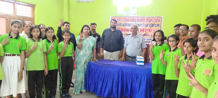 मधेपुरा. हॉली क्रॉस बालिका विद्यालय में शनिवार को मुख्यमंत्री बालिका सर्वाइकल कैंसर प्रतिरक्षण टीकाकरण अभियान शुरू हुआ. मौके पर सदर अस्पताल के कर्मी, विद्यालय निदेशिका डॉ वंदना कुमारी, सचिव गजेन्द्र कुमार व शिक्षिका आलिया सोनेवर मौजूद थे. नौ से 14 वर्ष के बालिकाओं के लिए कैंसर प्रतिरोधन के लिए बिहार सरकार के द्वारा ये योजना चलायी जा रही है. जिसमें मधेपुरा जिला के निजी विद्यालयों में हॉली क्रॉस बालिका विद्यालय पहला विद्यालय है, जिसमें टीकाकरण किया.ज्ञात हो कि शनिवार को डॉ वंदना कुमारी व डॉ गजेंद्र कुमार के 30वें शादी के सालगिरह के शुभअवसर पर निदेशिका कहा कि यह दिन विद्यालयों के बालिकाओं से स्वास्थ्य के लिए समर्पित है. इसलिए उन्होंने आज के दिन बच्चो कों सर्वाइकल कैंसर से बचाव के लिए ये प्रतिरोधन टीकाकरण अभियान का शुभारंभ किया. छात्राओं व अभिभावकों टीका के बारे में जानकारी दी.