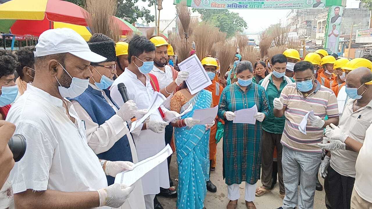 मधेपुरा. स्वच्छता ही सेवा है ” कार्यक्रम के तहत नगर परिषद कार्यालय से पैदल मार्च करते हुये कॉलेज चौक सहित अन्य जगहों पर साफ-सफाई कर ब्लीचिंग पाउडर का छिड़काव किया. नगर विकास एवं आवास विभाग तथा जिला प्रशासन के दिशा निर्देश पर नगर परिषद कार्यपालक पदाधिकारी तान्या कुमारी, मुख्य पार्षद कविता कुमारी साहा की अध्यक्षता में नप के सफाईकर्मियों व शहर के प्रबुद्धजनों एवं सामाजिक कार्यकर्ताओं मौजूद रहे. मौके पर सभी को स्वच्छता को लेकर शपथ भी दिलवाया गया. मौके पर कार्यपालक पदाधिकारी तान्या कुमारी ने कहा कि दिनांक 17 सितंबर से 02 अक्टूबर तक सरकार द्वारा चलाये जा रहे इस अभियान के तहत साफ सफाई का कार्य किया जायेगा. इसमें आमजनों की सहभागिता भी जरूरी है. पूर्व पार्षद सामाजिक कार्यकर्ता ध्यानी यादव ने कहा कि आज जो इस तरह के कार्यक्रम का आयोजन किया गया है वो काफी प्रशंसनीय है. सभी आदमी को खुद भी अपने आस-पड़ोस को साफ सुथरा रखना चाहिये. स्वच्छता में ही ईश्वर का वास होता हैं. समाजसेवी शौकत अली ने कहा कि इस तरह के आयोजन के लिए राज्य सरकार के साथ साथ जिला प्रशासन व नगर प्रशासन सभी धन्यवाद के पात्र हैं. इस मौके पर इसरार अहमद पार्षद, मो नजमुल होदा पार्षद प्रतिनिधि उर्फ कारी, गौरी यादव, नपं कर्मी दीपक कुमार, समरजीत सिंह, मानव कृष्णमूर्ति, राय जी, सफाई सुपरवाइजर मो. अनवर, केशव कुमार, अनमोल कुमार एवम भारी संख्या में सफाई कर्मचारी मौजूद थे.