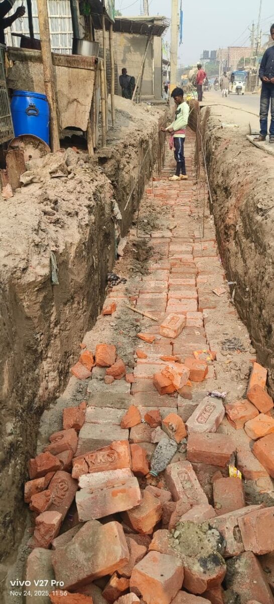बगैर प्राक्कलन बोर्ड के हो रहा नाले का निर्माण