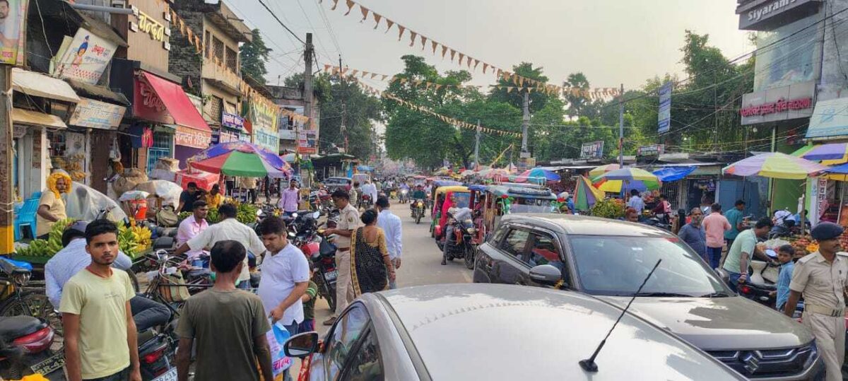 दुर्गा पूजा पर बाजार में उमड़ी भीड़, जाम से हांफी यातायात व्यवस्था