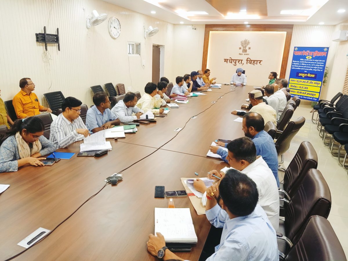 मधेपुरा . जिला निर्वाचन पदाधिकारी सह जिला पदाधिकारी तरनजोत सिंह ने गुरुवार को समाहरणालय परिसर स्थित न्यू एनआइसी हाॅल में मतदान केंद्रों के युक्तिकरण काे लेकर राजनीतिक दलों के प्रतिनिधियों के साथ बैठक की. डीएम ने सभी दलों के प्रतिनिधियों को जिले में चिह्नित किये गये मतदान केंद्रों व वहां उपलब्ध करायी जाने वाली सुविधाओं के बारे में जानकारी दी. बैठक में अपर समाहर्ता (आपदा), सभी निर्वाचक निबंधन पदाधिकारी, सभी सहायक निर्वाचक निबंधन पदाधिकारी, उप निर्वाचन पदाधिकारी जितेंद्र कुमार आदि उपस्थित थे.