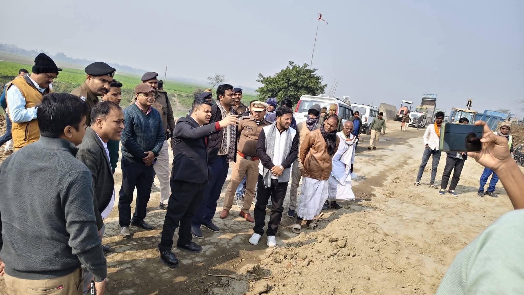 चौसा प्रखंड के रसलपुर धुरिया, मुख्यालय और फुलौत में तैयारी का किया निरीक्षण चौसा . जिलाधिकारी अभिषेक रंजन ने बुधवार को प्रखंड क्षेत्र का दौरा किया. उन्होंने मुख्यमंत्री नीतीश कुमार के संभावित दौरे से पहले विभिन्न विकास कार्यों व तैयारी का जायजा लिया. डीएम ने रसलपुर धुरिया कलासन, चौसा प्रखंड मुख्यालय और फुलौत का दौरा किया. उन्होंने विशेष रूप से फुलौत में निर्माणाधीन पुल का निरीक्षण किया, जो मुख्यमंत्री के संभावित कार्यक्रम का हिस्सा हो सकता है. निरीक्षण के दौरान डीएम ने संबंधित अधिकारियों को निर्देश दिये. उन्होंने कहा कि सभी कार्यों को समय पर और गुणवत्तापूर्ण तरीके से पूरा किया जाय, ताकि मुख्यमंत्री के दौरे के लिए सभी तैयारी सुनिश्चित की जा सकें. मौके पर एसडीएम पंकज कुमार घोष, सीडीपीओ अविनाश कुमार, बीडीओ सरीना आजाद,सीओ उदयकांत मिश्र, बिजली जेई संजीव कुमार, कर्मचारी मनीष कुमार, जिला पार्षद अनिकेत कुमार मेहता, मुखिया बबलू ऋषिदेव शामिल थे.
