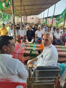 गम्हरिया प्रखंड मुख्यालय के प्रस्तावित उच्च विद्यालय प्रांगण में राजद के प्रखंड अध्यक्ष विश्वनाथ यादव की अध्यक्षता में कार्यकर्ताओं की बैठक आयोजित की गई. मौके पर पूर्व मंत्री सह सदर विधायक प्रो चंद्रशेखर यादव ने कार्यकर्ताओं को संबोधित करते एनडीए सरकार पर जमकर निशाना साधा. उन्होंने कहा कि हमारी सरकार द्वारा की गई घोषणा पर बिहार के मुख्यमंत्री नीतीश कुमार ने डर से 1100 रुपये पेंशन की घोषणा की है. जबकि पूर्व उप मुख्यमंत्री तेजस्वी यादव ने 1500 रुपये पेंशन की घोषणा की थी. बगल के राज्य झारखंड में हमारी सरकार है, जहां 2500 रुपये का पेंशन दिया जाता है. बिहार में जब हमारी सरकार बनेगी तो माई बहिन योजना के तहत महिलाओं को 2500 रुपये पेंशन दिया जाएगा. कहा कि एनडीए की सरकार बिहार में जनता को लूट रही है. यहां अपराध चरम सीमा तक बढ़ चुका है और सरकार मौन है. बैठक में आठों पंचायत से आए हुए राजद कार्यकर्ता आलोक कुमार मुन्ना, प्रभाकांत झा, रामानंद यादव, रमेश कुमार सिंह, राजकुमार यादव, रोशन सिंह, राणा सिंह, शक्ति सिंह, अमलेश यादव, जयप्रकाश, ललटू यादव, ललित कुमार, अशोक यादव, उपेंद्र राम, कृत्यानंद रजक, लाल यादव, रविंद्र यादव, मो इब्राहिम, रामजी मुखिया, नंदन यादव, शंभू सूतिहार व अन्य मौजूद थे.
