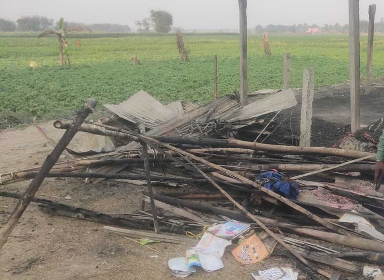 आग लगने से जला सारा सामान, खुले में पढ़ने को बच्चे मजबूर