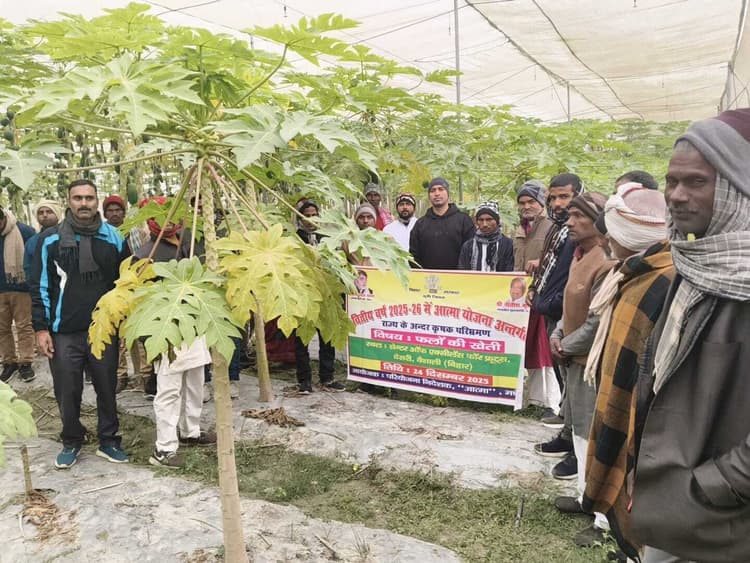 मधेपुरा. सेंटर ऑफ एक्सीलेंस फॉर फ्रूट्स संस्थान देसरी (वैशाली) में फलों की खेती विषय पर परिभ्रमण के लिए जिले के 40 प्रगतिशील किसानों को जिला कृषि पदाधिकारी-सह-परियोजना निदेशक, आत्मा ने रवाना किया. डीएओ ने बताया कि 24 दिसम्बर, 2025 को सेंटर ऑफ एक्सीलेंस फॉर फ्रूट्स संस्थान देसरी (वैशाली) में “फलों की खेती विषय पर किसानों को एक दिवसीय परिभ्रमण संस्थान में कराया जायेगा. इस कार्यक्रम में जिले के कृषकों को फलों की खेती करने में मदद मिलेगी. फलस्वरूप उत्पादन में बढ़ोतरी होगी एवं किसानों की आय में वृद्धि होगी.