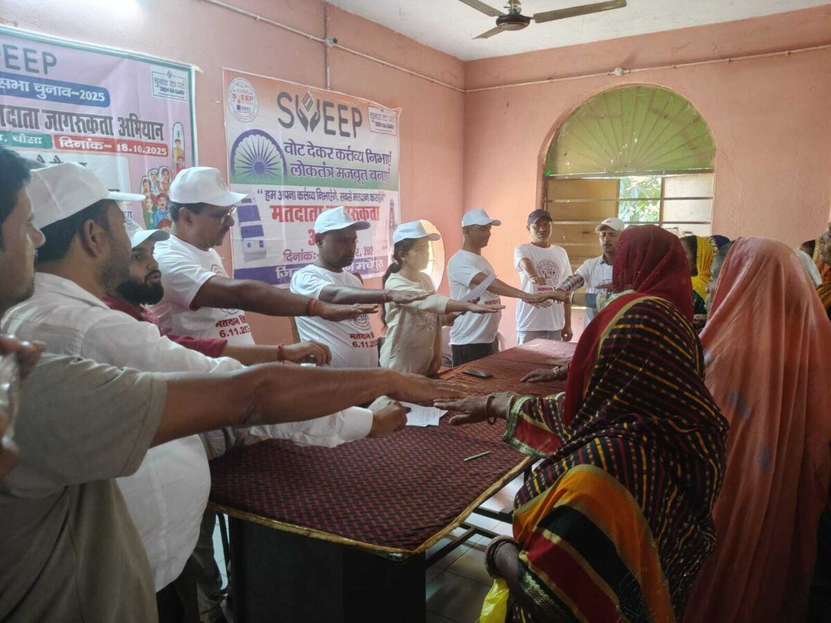 चौसा. प्रखंड कृषि कार्यालय में शनिवार को किसान चौपाल सह मतदाता जागरूकता कार्यक्रम का आयोजन किया गया, जिसकी अध्यक्षता बीएओ कोमल भारती ने की. चौपाल में किसानों को खेती-बाड़ी के आधुनिक तरीकों और कीट प्रबंधन की जानकारी दी. मौके पर किसानों को निर्भीक होकर मतदान करने के लिए प्रेरित किया गया. उन्हें भारत के नागरिक के रूप में लोकतंत्र में अपनी पूर्ण आस्था रखते हुए स्वतंत्र, निष्पक्ष और शांतिपूर्ण निर्वाचन की गरिमा बनाए रखने की शपथ दिलायी. बीएओ कोमल भारती ने बताया कि यह अभियान प्रखंड की सभी पंचायतों में अलग-अलग तिथियों पर चलाया जायेगा. इसके लिए प्रखंड तकनीकी प्रबंधक और सहायक तकनीकी प्रबंधकों के नेतृत्व में टीमें गठित की गयी है. अभियान का मुख्य उद्देश्य किसानों को मतदान के लिए प्रेरित कर जिले में वोट प्रतिशत बढ़ाना है. मौके पर कृषि समन्वयक कौशल कृष्ण अम्बेदकर, अंबुज कुमार, अवधेश कुमार, तकनीकी सहायक प्रबंधक वीरमणि कुमार, अंकित कुमार पासवान, किसान सलाहकार कुंजबिहारी शास्त्री, धीरज कुमार पासवान, अनुज कुमार, पंकज कुमार, सुनील कुमार, मणिकांत कुमार, कार्यपालक सहायक अमन कुमार और लेखापाल राजीव कुमार चौधरी आदि उपस्थित थे.