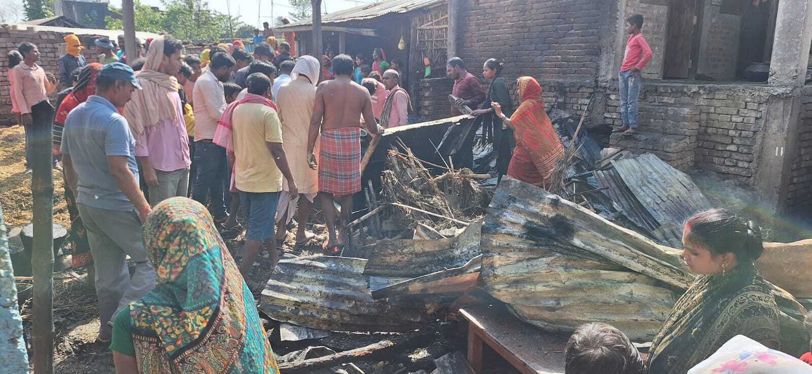 पुरैनी. प्रखंड क्षेत्र अंतर्गत गणेशपुर पंचायत में मंगलवार को 13 लोगों का घर जल गया. वहीं एक बच्चा झुलसा गया, जिसका इलाज चल रहा है.जानकारी के अनुसार गणेशपुर पंचायत के वार्ड नंबर नौ में बिजली की शॉर्ट सर्किट से आग लग गयी, जिससे 13 लोगों का घर जल गया. वहीं एक बाइक जल गया है. अगलगी की सूचना लोगों ने अग्निशमन विभाग को दी. दमकल की चार गाड़ियां पहुंचने पर आग पर काबू पाया गया. घटना की सूचना प्रमुख प्रतिनिधि दिनेश पंडित, जिला परिषद प्रतिनिधि संजय साहनी, मुखिया मो वाजिद, मुखिया विनोद कांबली निषाद रूपेश कुमार झा, पूर्व सरपंच पप्पू मिस्त्री पुष्प रंजन राय, प्रीतम कुमार, राहुल यादव आदि पहुंचे. पीड़ितों को हर संभव मदद करने का आश्वासन दिया. मौके पर पहुंचे राजस्व कर्मचारी ने क्षति का आकलन किया.