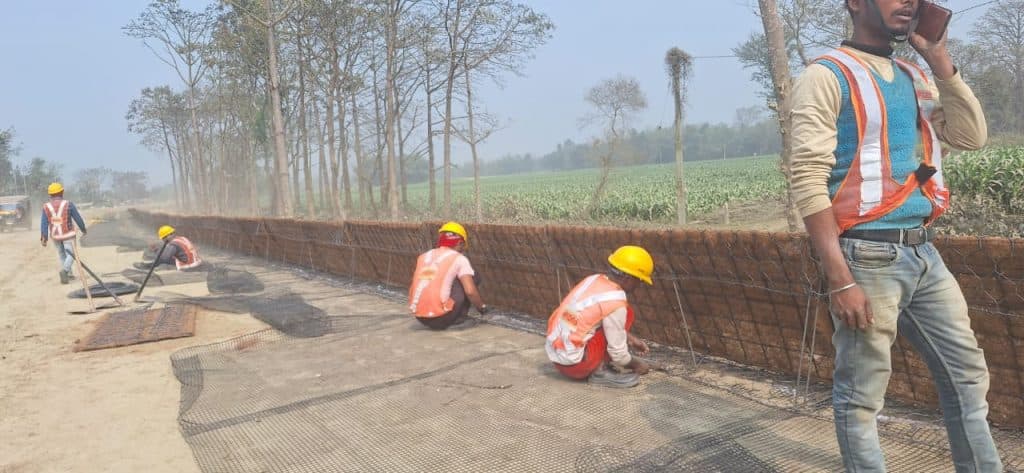 सड़क के दोनों ओर रबड़ बैंड में कोकोनट फाइबर (नारियल के रेशे) भरे जा रहे हैं. फिर इस बैंड को पतले मखमली कपड़े से कवर किया जा रहा है, ताकि नमी बरकरार रहे. फिर सड़क के निचले लेवल के साथ इसे खड़ा किया जा रहा है. यह जब पूरी तरह तैयार हो जाएगा, तो बाहरी हिस्से की ओर से भी मिट्टी डाल कर स्लोप बनाया जायेगा. पूरी दीवार पर मखमली घास का बीज स्प्रे किया जायेगा. पानी पड़ने के साथ ही घास उग जायेंगे और सड़क के दोनों किनारे हरियाली बनी रहेगी. बारिश के कटाव को लेकर ग्रीन स्लोप फेसिया काफी कारगर होगा. सड़क लंबे समय तक टिकाऊ बनी रहेगी.