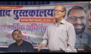 मधेपुरा. हिंदी दिवस पर आजाद पुस्तकालय में एक शाम हिंदी के नाम काव्यगोष्ठी की शुरुआत अध्यक्ष प्रो विनय कुमार चौधरी की अध्यक्षता में की गयी. हिंदी साहित्य को समृद्ध करने वाले साहित्यकारों, कवियों, उपन्यासकारों की कड़ी में पहली पंक्ति के बड़े नाम भारतेंदु हरिश्चंद, प्रेमचंद्र, रामधारी सिंह दिनकर, मैथिलीशरण गुप्त, नागार्जुन, महादेवी वर्मा, सुभद्रा कुमारी चौहान, फणीश्वर नाथ रेणु आदि की तस्वीर पर संयुक्त रूप से पुष्पांजलि अर्पित की गयी. इसके बाद हिंदी दिवस की थीम हिंदी राष्ट्रीय एकता व वैश्विक पहचान की ताकत पर प्रकाश डालते हुए सबों ने एक स्वर में कहा कि भारत भारती की आन, बान, शान और पहचान है हिंदी. कविताओं में दर्द, मोहब्बत, चिंता का दिखा संगम आजाद पुस्तकालय के सचिव डॉ हर्षवर्धन सिंह राठौर के संचालन में हिंदी दिवस को समर्पित एक शाम हिंदी के नाम काव्य संध्या की शुरुआत करती युवा कवयित्री गरिमा उर्विशा ने औरत की क्षमता को रेखांकित करते कहा मैंने देखा है अकेली औरतों को अकेली औरतें कोमल नहीं होती, वे होती हैं फौलादी जिनमें आत्मविश्वास प्रचुर होता है. वहीं पुरुष प्रधान समाज के दिखावे पर चोट करते हुए कहा कि वे नहीं बनना चाहती कभी देवी, नहीं करवाना चाहती अपनी पूजा, उसे विशेष सौम्य और कोमल भी नहीं बनना. रमन कुमार ने व्यवस्था पर कटाक्ष करते कहा कि ये सारा जिस्म झुककर बोझ से दोहरा हुआ होगा, मैं सजदे में नहीं था आपको धोखा हुआ होगा, वहीं सरकारी योजनाओं की जमीनी हकीकत बयां करते कहा यहां तक आते-आते सुख जाती है सभी नदियां, हमें मालूम है पानी कहां ठहरा हुआ होगा. गजलकार सियाराम यादव मयंक ने हिंदी के महत्व को रेखांकित करते कहा कि भारत की पहचान है हिंदी, जन-जन की सम्मान है हिंदी, राजा, रंक, फकीर, साधुजन, गीता कुरान, बाइबिल भारत की पहचान है हिंदी. समाजशास्त्री डॉ आलोक कुमार ने चुनौतियों के बीच नई पहल की बात करते कैनवासे जिंदगी कविता प्रस्तुत करते कहा आंखे में समाए सपने बड़े गढ़ने होंगे. नए मुहावरे, तस्वीर यूं नहीं बदलेगी, लेने होंगे तुझे फैसले कड़े. भूखों को रोटी नहीं मिलती, कुरसी मिलते फाग सुनाते हैं विशिष्ट अतिथि वरीय साहित्यकार प्रो सिद्धेश्वर काश्यप ने गजल के माध्यम से वर्तमान राजनीति के चाल चरित्र को आड़े हाथों लेते हुए कहा कि अपना अपना भाग जगाते हैं, लेकिन खुल के आग लगाते हैं. रामा रहमां सिर्फ रटा कर के, छुप-छुप कर ये नाग बनाते हैं. वहीं धर्म की राजनीति पर प्रहार करते हुए कहा कि मंदिर मस्जिद हैं बिलखा करते, माथे पर ये पाग सजाते हैं, भूखों को रोटी नहीं मिलती, कुर्सी मिलते फाग सुनाते हैं. सम्मानित अतिथि चर्चित व्यंग्यकार शशिकांत सिंह शशि ने अपनी व्यंग्यात्मक प्रस्तुतियों के द्वारा वर्तमान हालात को प्र