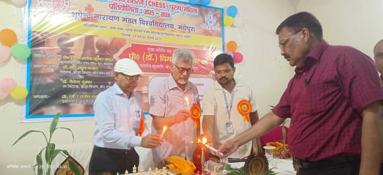 मधेपुरा. बीएनएमवी कॉलेज, साहुगढ़ में मंगलवार को दो दिवसीय अंतर महाविद्यालय शतरंज (महिला व पुरुष) प्रतियोगिता 2025-26 का आयोजन किया गया. इसके साथ ही नए सत्र में खेल व सांस्कृतिक प्रतियोगिता के आयोजन की शुरुआत हुई. विश्वविद्यालय की क्रीड़ा व सांस्कृतिक परिषद् के तत्वावधान में आयोजित इस प्रतियोगिता का उद्घाटन निदेशक डॉ अबुल फजल, उप निदेशक डॉ जैनेंद्र कुमार और महाविद्यालय के प्राचार्य डॉ संजीव कुमार ने किया. बीएनएमयू लहरायेगा परचम निदेशक डॉ अबुल फजल ने कहा कि विश्वविद्यालय के कुलपति डॉ विमलेंदु शेखर झा के नेतृत्व में प्रतियोगिताओं में भाग लेकर जीतने वाले विद्यार्थियों को कई महत्वपूर्ण अवसर प्राप्त होंगे. क्रीड़ा विभाग दिन प्रतिदिन नये आयामों को गढ़ रहा है. यह देखकर प्रसन्नता होती है कि प्रतियोगिता स्थल पर काफी सारे छात्र-छात्राएं भाग लेने के लिए पहुंचते हैं. यह प्रसन्नता तब और बढ़ जायेगी जब अंतर विश्वविद्यालय और ईस्ट जोन प्रतियोगिता में भूपेंद्र नारायण मंडल विश्वविद्यालय के खिलाड़ी अपना परचम बुलंद करेंगे. लगातार कैंप का हो रहा आयोजन उप निदेशक डॉ जैनेंद्र कुमार ने कहा कि कुलपति के नेतृत्व में विश्वविद्यालय में क्रीड़ा व सांस्कृतिक गतिविधियों को भी बढ़ावा मिल रहा है. डॉ कुमार ने कहा कि गत कुछ वर्षों से खेल व सांस्कृतिक गतिविधियों में विश्वविद्यालय ने अच्छा प्रदर्शन किया है. महाविद्यालय स्तर पर चयनित छात्र-छात्राओं को विशेष रूप से प्रशिक्षित करने के लिए लगातार कैंप का भी आयोजन किया जा रहा है. उन्होंने मंच के माध्यम से विश्वविद्यालय क्षेत्र अंतर्गत सभी महाविद्यालय के प्राचार्यों से अनुरोध किया है कि वह अपनी टीम आवश्यक तौर पर अंतर महाविद्यालय प्रतियोगिताओं के लिए भेजें. दिव्या ने पेश किया उदाहरण कार्यक्रम की अध्यक्षता करते हुए प्राचार्य डॉ संजीव कुमार ने कहा कि यह हमारे महाविद्यालय के लिए सौभाग्य की बात है कि अंतर महाविद्यालय प्रतियोगिता का पहला कार्यक्रम की मेजबानी करने का अवसर हमें प्राप्त हुआ. प्राचार्य ने शतरंज को महाभारत काल से जोड़ते हुए इसके ऐतिहासिक और बौद्धिक महत्व के बारे में बताया. उन्होंने खेलों के माध्यम से विद्यार्थियों में नेतृत्व, रणनीति और धैर्य जैसे गुणों के विकास पर बल दिया. उन्होंने शतरंज के महत्व के बारे में बताते हुए हाल ही में विश्व चैंपियन रही दिव्या देशमुख का उदाहरण पेश किया. प्रतियोगिता में 13 महाविद्यालयों की टीम ने हिस्सा लिया अंतर महाविद्यालय शतरंज प्रतियोगिता में 13 महाविद्यालयों की टीमों ने हिस्सा लिया. जिसमें एमएलटी कॉलेज सहरसा, हरिहर साहा कॉलेज उदाकिशुनगंज, बीएनएमवी कॉलेज साहुगढ़, अनूप लाल कॉलेज त्रिवेणीगंज, टीपी कॉलेज मधे