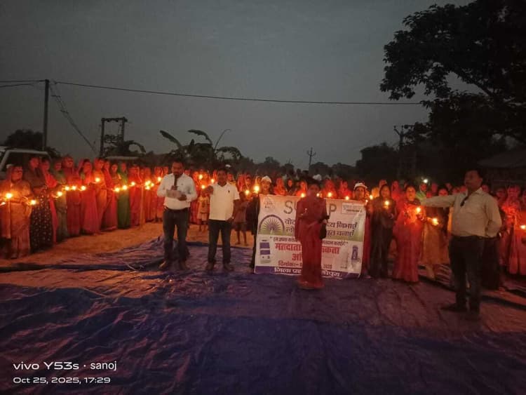 मधेपुरा. बिहार विधानसभा आम निर्वाचन 2025 के मद्देनज़र शनिवार को जिले के चौसा प्रखंड अंतर्गत लौआलगान पंचायत में जीविका की 150 से अधिक सक्रिय दीदियों द्वारा एक भव्य मतदाता जागरूकता अभियान व कैंडल मार्च का आयोजन किया गया. इस अवसर पर दीदियों ने हाथों में तख्तियां और कैंडल लेकर जनमानस को “मतदान हमारा अधिकार है”, “पहले मतदान, फिर जलपान”, और “हर वोट ज़रूरी है” जैसे नारों के माध्यम से मतदान के प्रति प्रेरित किया. कैंडल मार्च के दौरान दीदियों ने पंचायत के विभिन्न वार्डों का भ्रमण करते हुए ग्रामीणों, युवाओं व महिलाओं को आगामी छह नवंबर को होने वाले मतदान में शत-प्रतिशत मतदान करने का संकल्प दिलाया. कार्यक्रम का उद्देश्य ग्रामीण क्षेत्रों में मतदान के महत्व को उजागर करना एवं प्रत्येक मतदाता को अपने मताधिकार के प्रयोग हेतु जागरूक करना था. इस अवसर पर उपस्थित जीविका दीदियों ने कहा कि वे घर-घर जाकर लोगों को मतदान के लिए प्रेरित करेंगी ताकि लोकतंत्र की जड़ें और अधिक मजबूत हो सकें. इस कार्यक्रम को लेकर चौसा प्रखंड में उत्साह का माहौल देखने को मिला. स्थानीय लोगों ने जीविका दीदियों के इस प्रयास की सराहना करते हुए कहा कि इस तरह की जन जागरूकता की पहलें निश्चित रूप से मतदान प्रतिशत बढ़ाने में अहम भूमिका निभायेंगी. इस अवसर पर प्रखंड परियोजना प्रबंधक, सभी कर्मी एवं कैडर ने सभी दीदियों को मतदान के महत्व को समझाया.