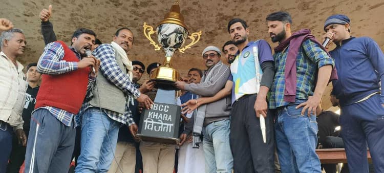 नयानगर. खेल से आपसी सौहार्द कायम रहता है. युवाओं को सकारात्मक उर्जा के साथ स्वयं व समाज के विकास के लिए वर्तमान परिवेश में कार्य करने की जरूरत है. यह बातें रविवार को उदाकिशुनगंज प्रखंड क्षेत्र के खाड़ा पंचायत के शास्त्रीय स्मारक उच्च विद्यालय के मैदान में खाड़ा पंचायत के मुखिया ध्रुव कुमार ठाकुर ने एमबीसीसी क्रिकेट क्लब के फाइनल मुकाबले के बाद पुरस्कार वितरण करते वक्त कहा. इससे पूर्व फाइनल मुकाबला खगरिया व सहशोल के बीच खेला गया. इसमें सहशोल के कप्तान पंकज कुमार ने टॉस जीतकर पहले बल्लेबाजी करते हुए लगभग 18 ओवर में आलआउट होकर 119 बनाया. जवाब में उतरी खगड़िया की टीम ने 13 ओवर में पांच विकेट खोकर सानदार मैच जीत लिया. मुख्य अतिथि खाड़ा पंचायत के मुखिया ध्रुव कुमार ठाकुर, कुरसंडी पंचायत के मुखिया कुंदन सिंह ने विजेता टीम को शिल्ड दिया. वहीं उपविजेता टीम को सरपंच प्रतिनिधि मंजय प्रसाद सिंह ने शिल्ड दिया. वहीं मैन ऑफ द मैच विजेता टीम के गुलशन कुमार वहीं मैन ऑफ द सीरीज गुलशन कुमार को ही दिया गया. वहीं रघुनंदन मिश्रा द्वारा विजेता टीम को 51 सौ रुपये की नकद पुरस्कार दिया गया. इस टूर्नामेंट का फाइनल मुकाबला में अभिषेक कुमार स्काेरर की भूमिका में, उद्घोषक के रूप में मिथुन पासवान, मनमोहन सिंह ने लोगों को भरपूर मनोरंजन किया. एमबीसीसी क्रिकेट क्लब खाड़ा के आयोजन कर्ता सुमित कुमार उर्फ लालू सिंह,छोटू सिंह, दीपक कुमार, विजय सिंह, शिव कुमार महतो, कुणाल कुमार सहित अन्य मौजूद थे.