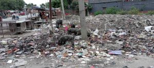 एनएच 106 के किनारे जमा गंदगी, आमजनों के लिए बनी समस्या