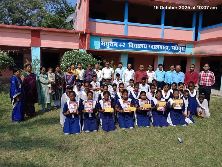 जिला शिक्षा व प्रशिक्षण संस्थान (डायट) में आयोजित जिला स्तरीय रोल प्ले तथा लोक नृत्य प्रतियोगिता 2025 में मधुराम प्लस टू विद्यालय ग्वालपाड़ा की छात्रा प्रिया कुमारी, खुशबू कुमारी मुर्मू, प्रीति कुमारी प्रथम, सोना कुमारी मुर्मू, आशा किस्कू, प्रीति कुमारी द्वितीय व सोनी कुमारी मुर्मू ने प्रतियोगिता में भाग लेकर उत्कृष्ट प्रदर्शन कर जिला स्तर पर प्रथम स्थान प्राप्त कर विद्यालय का मान बढ़ाया.एचएम संजय कुमार की अध्यक्षता में समारोह आयोजित कर प्रतिभागियों को सम्मानित व पुरस्कृत किया. विद्यालय के शिक्षक एचएम, संजय कुमार ने सभी प्रतिभागियों को बधाई दी. मौके पर शिक्षक-शिक्षिका