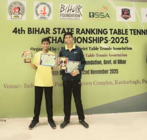 मधेपुरा. मधेपुरा के माया विद्या निकेतन विद्यालय के प्रतिभाशाली छात्र नमन कुमार ने राज्य स्तरीय टेबल टेनिस प्रतियोगिता में उत्कृष्ट प्रदर्शन करते हुए तृतीय स्थान प्राप्त किया है. नमन का चयन अंडर- 14 नेशनल टेबल टेनिस चैंपियनशिप के लिए हुआ है, जो जिले के लिए गौरव की बात है. नमन ने टेबल टेनिस खेलना मात्र 7–8 वर्ष की उम्र से प्रारंभ किया था. वह पहले भी दो बार नेशनल स्तर (2022 और 2024) की प्रतियोगिताओं में भाग ले चुका है तथा कई बार स्टेट लेवल पर भी दोनों भाइयों ने अपनी प्रतिभा का प्रदर्शन कर चुका है. वर्तमान में वह माया विद्या निकेतन का छात्र है और लगातार मेहनत व अनुशासन के साथ खेल में उत्कृष्टता प्राप्त कर रहा है. नमन ही नहीं, उसका छोटा भाई मनन कुमार भी टेबल टेनिस में खिलाड़ी है. मनन का भी इस वर्ष नेशनल प्रतियोगिता के लिए चयन होना विद्यालय और परिवार, दोनों के लिए गर्व का क्षण है. दोनों भाइयों की सफलता में इनकी माता, जो माया विद्या निकेतन में ही शिक्षिका हैं का विशेष योगदान है. उन्होंने बच्चों की मेहनत, प्रतिभा और खेल भावना को सदैव बढ़ावा दिया है और उनकी उपलब्धियों को अपना लक्ष्य माना है.