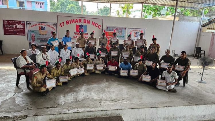 संयुक्त वार्षिक प्रशिक्षण शिविर (सीएटीसी-IX) के तीसरे दिन 17 बिहार बटालियन एनसीसी, सहरसा द्वारा रक्त दान महादान शीर्षक से एक सफल रक्तदान शिविर का आयोजन किया गया. यह आयोजन ओटीसी बरौनी में संपन्न हुआ. इसमें सभी रैंक और कैडेट्स ने उत्साहपूर्वक भाग लिया एवं एनसीसी की सेवा भावना तथा सामाजिक उत्तरदायित्व का परिचय दिया. इस शिविर में ब्रह्माकुमारीज़, बेगूसराय तथा रोटरी क्लब ऑफ इंडिया (बेगूसराय चैप्टर) का विशेष सहयोग रहा. इन्होंने रक्तदाताओं के समन्वय एवं चिकित्सकीय व्यवस्था में महत्वपूर्ण भूमिका निभायी. कमांडिंग ऑफिसर कर्नल बी सत्यनारायण ने कैडेट्स की प्रतिबद्धता की सराहना करते हुए कहा, “रक्तदान करुणा का एक सशक्त प्रतीक है. हमारे कैडेट्स ने फिर एक बार समाज सेवा की भावना को साकार किया है. इस अवसर पर ठाकुर प्रसाद महाविद्यालय के एनसीसी कैडेट्स तथा एनसीसी ऑफिसर ने 26 यूनिट में से नौ यूनिट रक्तदान किया. रक्तदान करने में एनसीसी पदाधिकारी ले. गुड्डू कुमार, अंतुनी राज, अभिनव रमन, रामरेश कुमार, अभिनव रमन, धनंजय कुमार, आयुष राज, अंकेश कुमार, सुशांत कुमार, गौरव कुमार ने रक्तदान किया. कार्यक्रम का समापन सभी दाताओं, स्वयंसेवकों और सहयोगी संस्थाओं को धन्यवाद ज्ञापन के साथ हुआ. इस अवसर पर योगदान देने वाले कैडेट्स और स्टाफ को प्रशंसा पत्र भी प्रदान किये गये.डिस्क्लेमर: यह प्रभात खबर समाचार पत्र की ऑटोमेटेड न्यूज फीड है. इसे प्रभात खबर डॉट कॉम की टीम ने संपादित नहीं किया है