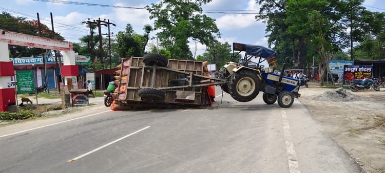 उदाकिशुनगंज. एनएच-106 पर बीएसएनल कार्यालय के पास गुरुवार दोपहर धान की बोरी लदे एक ट्रैक्टर पलट गया. हालांकि इस हादसे में ड्राइवर बाल-बाल बच गया. प्रत्यक्षदर्शियों ने कहा कि ओवरलोडिंग के कारण ट्रैक्टर असंतुलित होकर पलट गया. हादसे के बाद कुछ देर के लिए सड़क पर आवागमन प्रभावित हो गया. इधर घटना की सूचना मिलते ही पुलिस मौके पर पहुंची. पुलिस ने ट्रैक्टर को सड़क से हटवाकर यातायात को सामान्य कराया.