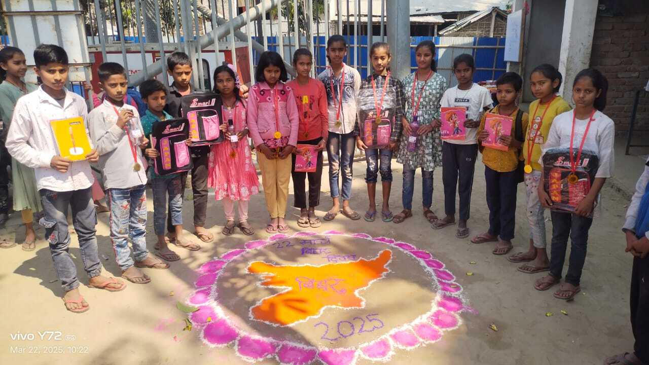 मधेपुरा. सदर प्रखंड अंतर्गत मां भगवती स्थान श्रीपुर चकला स्थित प्रांगण पाठशाला में बिहार दिवस के पर पेंटिंग व निबंध प्रतियोगिता का आयोजन किया गया. मौके पर पूर्व पैक्स अध्यक्ष इंद्रभूषण यादव, पूर्व मुखिया चंदन कुमार चुनचुन व प्रवीण यादव ने कहा कि बिहार की समृद्ध संस्कृति एवं इतिहास को जानने व समझने के लिए ऐसे आयोजन महत्वपूर्ण हैं. मौके पर प्रांगण पाठशाला के दिलखुश कुमार, नीरज कुमार निर्जल, कुंदन कुमार, कंचन कुमारी, रानी कुमारी, अरविंद कुमार यादव, बबलू कुमार, अनीस गौतम, कार्यक्रम संयोजक मुरारी सिंह, संस्था के उपसचिव आशीष सत्यार्थी, कोषाध्यक्ष अभिषेक सोनी आदि उपस्थित थे.
