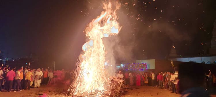 मधेपुरा. होली को लेकर इस बार होली मिलन समारोह के साथ युवकों ने होलिका दहन के साथ ही रंग गुलाल खेलना शुरू कर दिया. होलिका दहन में स्थानीय लोगों के साथ स्थानीय जनप्रतिनिधियों ने राम जानकी ठाकुरबाड़ी पहुंच कर होलिका दहन के लिए शामिल हुए. देखते ही देखते लकड़ी और बांस के साथ-साथ गोबर के उपले का टीला जमा हो गया. वहीं बताया गया कि पुजारी अशोक तिवारी ने विधिवत पूजन के बाद लोगों ने बनाए गए होलिका में आग लगा दी. देखते ही देखते होलिका धू धू करके जलने लगी. आग की लपटे आसमान छूने लगा. और स्थानीय लोगों ने उस आग में तील, धी, कर्पूर, फेंकने के बाद घर से डंडा से बांध कर लाए गेहूं का शिश को उस आग में भूना और होलिका दहन का आग भी अपने अपने घर ले गया. वही लोगों ने उस आग में पापड़ सेंक कर खाया. इस दौरान लोगों ने आग के चक्कर भी लगाए. वही इस दौरान पुलिस प्रशासन भी पुरी तरह सक्रिय रही. थानाध्यक्ष बिरेंद्र राम, एसआई राजेश, रामदयाल सिंह सहित कई पुलिस कर्मी तैनात थे. मौके पर नगर पंचायत अध्यक्ष पुनम कुमारी, व्यापार मंडल अध्यक्ष शिवचंद चौधरी, पुर्व जीप सदस्य दिनेश कुमार यादव, वस्त्र व्यापार मंडल अध्यक्ष अरविंद प्राणसुखका, व्यापार संघ के महासचिव अशोक भगत, अशोक भगत, संजीव शर्मा, सुदेश शर्मा, दीलीप खंडेलवाल, गजेन्द्र यादव, जनार्दन भगत, मनोज भगत, अमीत खेतान, गोविंद खंडेलवाल, शंकर अग्रवाल, निर्मल अग्रवाल, संजीव भगत आरएसएस, बैंक मैनेजर अमीत कुमार, बादल भगत, पंकज भगत, पंकज गुप्ता, पुरूषोत्तम अग्रवाल, इंद्र देव स्वर्णकार, बबलू भगत, मनोज गुप्ता, सहित सैकड़ों लोग मौजूद थे.