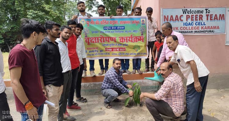 पुरैनी. उदयनाचार्य विद्याकर कवि महाविद्यालय, कडामा, आलमनगर में विश्वविद्यालय के निर्देशानुसार शुक्रवार को पौधरोपण किया गया. प्रधानाचार्य डॉ माधवेंद्र झा ने बताया कि जलवायु परिवर्तन को देखते हुए महाविद्यालय परिसर के खाली पड़े जगह पर राष्ट्रीय सेवा योजना की तीनों इकाइयों के नेतृत्व में पौधरोपण कराया गया. मौके पर राष्ट्रीय सेवा योजना इकाई के कार्यक्रम पदाधिकारी डॉ चंद्रशेखर मिश्रा, प्रो अमरेंद्र झा, प्रो प्रेमनाथ आचार्य, प्रो पूजा, रविन्द्र नाथ आचार्य, नंदन मिश्रा, नारायण मिश्रा, हरिओम कुमार, आयुष मिश्रा आदि मौजूद थे.