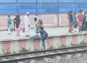मधेपुरा स्टेशन पर यात्रियों की जान से खिलवाड़, ओवरब्रिज छोड़ ट्रैक पार कर रहे लोग