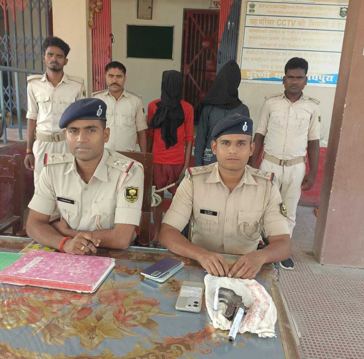 पुरैनी. पुरैनी थाना की पुलिस ने दो युवकों को एक अवैध हथियार व एक कारतूस के साथ गिरफ्तार किया. जानकारी देते पुरैनी के थानाध्यक्ष चंद्रजीत प्रभाकर ने बताया कि पुलिस को सूचना मिली कि मकदमपुर पंचायत में दो युवक हथियार लेकर किसी बड़ी घटना को अंजाम देने की योजना बना रहे हैं. इसी दौरान वरीय पदाधिकारी के दिशा निर्देश पर छापेमारी की गयी. पुलिस बल को देखकर दो युवक भागने लगे, जिसे संदेह होने पर सशस्त्र बल के सहयोग से खदेड़ कर पकड़ा गया. गिरफ्तार युवक की पहचान सुजीत कुमार उम्र 19 वर्ष, पेसर रमन मेहता, संतोष कुमार उम्र 26 वर्ष दोनों साकिन मकदमपुर कोरचक्का वार्ड चार बताया गया. सुजीत कुमार से पूछे जाने पर बताया कि उन्होंने अपने पड़ोसी संतोष को हथियार व कारतूस छुपा कर रखने के लिए दिया है. इस दौरान पड़ोसी के आवासीय घर की तलाशी ली गयी तो कोने में टंगे हुए प्लास्टिक के लाल थैली में कपड़ा में छुपा कर रखा हुआ देसी कट्टा बरामद हुआ और अनलोड करने पर एक कारतूस पाया गया. दोनों ही युवकों को थाना पर लाकर कागजी प्रक्रिया पूरी की गयी व न्यायिक हिरासत में जेल भेज दिया गया है.