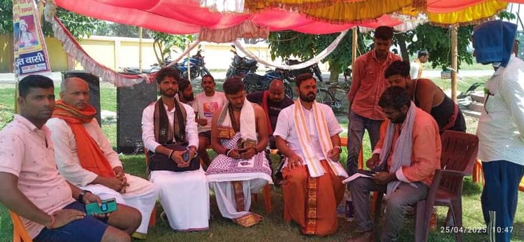 नयानगर. उदाकिशुनगंज प्रखंड के खाड़ा पंचायत स्थित अमीलाल संस्कृत महाविद्यालय के परिसर में दो मई से प्रारंभ होने 11 दिवसीय महारुद्र यज्ञ को लेकर तैयारी शुरू हो गयी है. शुक्रवार को काशी (बनारस) के पंडित आचार्य अभिनंदन दूबे ने टीम के बटुक सदस्यों के साथ खाड़ा पंचायत के मुखिया ध्रुव कुमार ठाकुर, सरपंच प्रतिनिधि मंजय प्रसाद सिंह, सीके झा, शिवेंद्र कुमार सिंह, कोषाध्यक्ष ब्रह्मदेव रजक ने यज्ञ मंडप में बन रहे हवन कुंड व गंगा आरती सहित अन्य कार्यों के संबंध में जायजा लिया. जानकारी के अनुसार महारुद्र यज्ञ समिति द्वारा सामूहिक वैवाहिक कार्यक्रम तथा सामूहिक उपनयन संस्कार कार्यक्रम का भी आयोजन रखा गया है. मौके पर चंदन झा, शिवेंद्र कुमार सिंह, प्रकाश, सनोज, अजीत, मिथुन, नंदन झा, अभिषेक, नागो महतों,राजन झा आदि मौजूद थे.