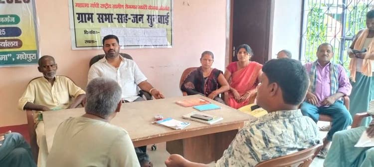 नयानगर. उदाकिशुनगंज प्रखंड क्षेत्र अंतर्गत नयानगर पंचायत में मनरेगा के तहत ग्राम सभा सह जनसुनवाई कार्यक्रम का आयोजन किया, जिसकी अध्यक्षता विन्देस्वरी शर्मा ने की. ग्राम पंचायत में मनरेगा के द्वारा वित्तीय वर्ष 2024-2025 में संचालित योजनाओं की जांच, समाजिक अंकेक्षण साधन सेवियों द्वारा किया. अंकेक्षण दल छह दिवसीय प्रवास ग्राम पंचायत में करते हुए मनरेगा द्वारा सभी संचालित योजनाओं की जांच की. मौके पर टीम लीडर शुभद्रा देवी, पुष्पा देवी, रानी मनीषा, ज्योरी सदस्य मुकेश झा, नरेस दास आदि मौजूद थे.