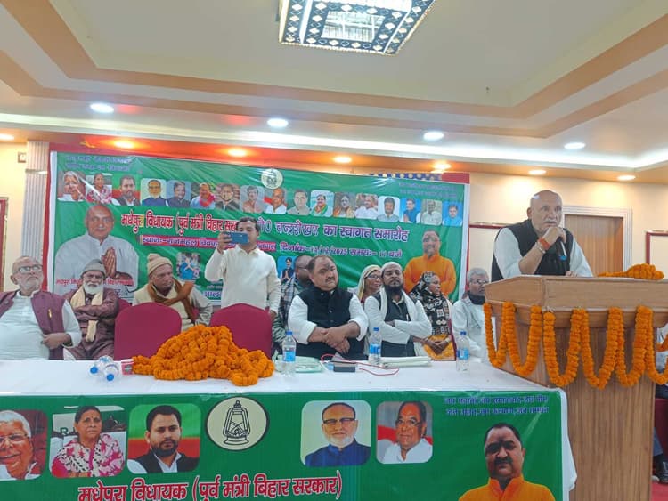 आलमनगर के राजमहल विवाह भवन में महागठबंधन के द्वारा सदर विधायक प्रो चंद्रशेखर यादव का सम्मान समारोह का आयोजन किया गया. इस अवसर पर महागठबंधन के नेताओं ने माला पहनाकर कर अभिनंदन एवं स्वागत किया. इस दौरान उपस्थित महागठबंधन के कार्यकर्ताओं को संबोधित करते हुये पुर्व मंत्री व विधायक प्रो चंद्रशेखर यादव ने कहा कि इरादा बुलंद हो तो सियासत हासिल की जा सकती है. कोई भी चुनाव आयोग गलती करें. उस पर कोई कार्रवाई नहीं हो सकता यह विधेयक जब पारित हुआ. तभी ही लोकतंत्र समाप्त हो गया. अब संविधान को समाप्त करने की योजना है. जीतन राम मांझी पुरे परिवार को बना दिया, परंतु बीजेपी परिवारवाद नहीं है. एक भी आरएसएस का पुर्वज स्वतंत्रता की की लड़ाई में शामिल नहीं थे. फिर भी वो देशभक्त है. हमलोग संकल्प लेंगे तो इस विधानसभा से जीत को कोई नहीं रोक सकता है. बिहार में दर्जनों पुल गिर चुका है. इन्हें सिर्फ सत्ता चाहिये, जाति धोखा है. जाति इंसानों ने बनाई है. 195 देश में से पांच से छह देश में ही जाति है. ंजाति का भेद खत्म कीजिये मनुवादी ने इस देश में जाति व्यवस्था को लागू किया है.उन्होंने कहा कि मैं होसला अफजाई के लिये आया हुं पुर्व मुख्य पार्षद मधेपुरा डॉ विजय कुमार विमल ने कहा कि भाजपा में रहकर मेने देखा है. भाजपा में मान सम्मान नहीं मिलता है. यह आरएसएस से संचालित होता है. मधेपुरा में नया प्रयोग किया गया, परंतु विरोधी सफल नहीं हो पाया. आज चुनाव आयोग के खिलाफ नहीं जा सकते हैं. कार्यकर्ता को अपना मनोबल उंचा रखना पड़ेगा. वहीं डॉ विक्रम सिंह ने कहा कि आलमनगर विधानसभा में 86 हजार मत लोगों ने हमारे प्रत्याशी को मत प्राप्त हुआ. हमें एकजुट होकर आगे की लडाई लड़नी है एवं मैं हमेशा लोगों के लिये सुख-दुख में साथ हैं. यह समारोह कार्यकर्ता में उत्साह भरने के लिए आयोजित किया गया है. उन्होंने आये अतिथि का आभार व्यक्त किया. मौके पर पूर्व मुखिया बिरेंद्र सिंह, असगर अली , अनुरंजन सिंह , विकास कुमार यादव, सुरेश मेहता,मुकुन्द प्रसाद यादव, रणधीर सिंह मो रउफ , महेश मोहन झा, मिथिलेश यादव विश्वजीत राम सहित हजारों कार्यकर्ता मौजूद थे सभा का संचालन प्रखंड राजद अध्यक्ष बंटी देवगण ने किया.