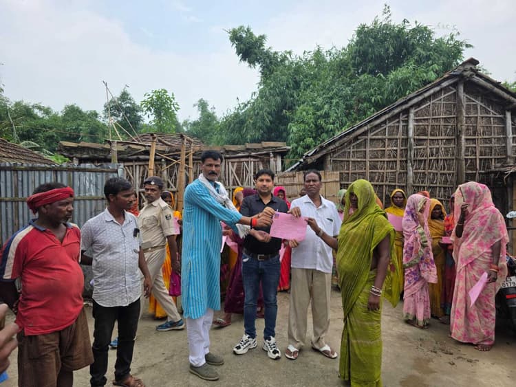 सिंहेश्वर. डॉ आंबेडकर समग्र सेवा अभियान के तहत शनिवार को दुलार पिपराही पंचायत के महादलित टोला में शिविर लगाया गया. इसमें 20 महादलित परिवारों को तीन- तीन डिसमिल बंदोबस्ती वास भूमि का पर्चा दिया गया. मौके पर दुलार पिपराही पंचायत के मुखिया, अंचल अधिकारी नवीन कुमार सिंह आदि मौजूद थे. अंचल अधिकारी ने बताया कि राजस्व एवं भूमि सुधार विभाग द्वारा ग्रामीण वासविहीनों को तीन डिसमिल जमीन देने के लिए बसेरा- 2 अभियान चलाया जा रहा है. इसी के तहत पर्चा कैंप की तिथि पर ही लाभुकों को दिया जा रहा है.