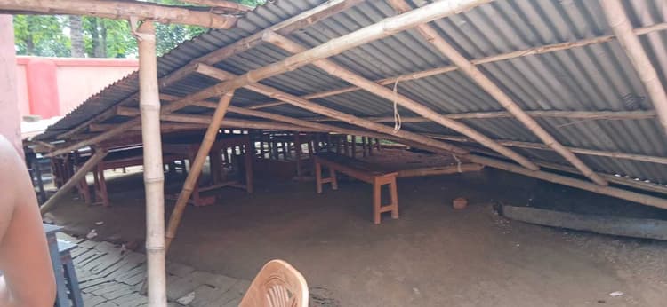 प्रखंड क्षेत्र अंतर्गत के लक्ष्मीपुर चंडीस्थान पंचायत स्थित उत्क्रमित मध्य विद्यालय छर्रापट्टी में चदरे का शेड गिरने से छह बच्चे जख्मी हो गये. जानकारी के अनुसार विद्यालय में चदरा व बांस बल्ली से निर्मित शेड तले वर्ग एक से आठ तक के बच्चों की पढ़ाई चल रही थी. इसी दौरान करीब एक बजे चदरा निर्मित शेड गिर पड़ा. शेड के नीचे पढ़ रहे वर्ग एक व दो के बच्चे दब गये.इस दौरान विद्यालय में अफरा-तफरी का माहौल हो गया. स्थानीय राज कुमार, भूषण यादव, रमण चौधरी समेत ग्रामीण पहुंच कर बच्चों को शेड के नीचे दबे बच्चों को बाहर निकाला. इस दौरान वर्ग एक के प्रिंस कुमार के दायें कांधे में कील गड़ गया, तो वहीं हिमांशु कुमार, दिव्यांशु कुमार, रीता कुमार, अमृतराज, कृति कुमार को चोटें लगी. परिजनों ने प्रिंस कुमार को इलाज के लिए सामुदायिक स्वास्थ्य केंद्र कुमारखंड में भर्ती कराया, जहां प्राथमिक उपचार के बाद उसे छुट्टी दे दी गयी. ग्रामीणों ने घटना की जानकारी प्रखंड शिक्षा पदाधिकारी किशोर भाष्कर समेत डायल 112 के पुलिस पदाधिकारी को दे दी. सूचना मिलते ही डायल 112 के पुलिस पदाधिकारी व प्रखंड शिक्षा पदाधिकारी पहुंचकर स्थिति का जायजा लिया. बीईओ ने विद्यालय के शिक्षक पारस कुमार, राजीव कुमार, सुशील कुमार यादव, मो रिजवान, पूजा कुमारी, प्रणव कुमार आदि से पूछताछ कर वितरित जानकारी ली. इस संबंध में प्रभारी प्रधानाध्यापक रमेश कुमार भूषण ने दूरभाष पर बताया कि मैं आज छुट्टी में हूं. अन्य दिनों के भांति विद्यालय का संचालन वरीय शिक्षक पारस कुमार कर रहे थे. उन्होंने बताया कि विद्यालय में वर्ग एक से आठ तक 314 बच्चे नामांकित हैं. वर्ग कक्ष के लिए सिर्फ दो कमरे हैं. इसमें से एक कमरे में विद्यालय के आवश्यक कागजात एवं दूसरे कमरे में सामान आदि रखा हुआ है. बताया गया कि कार्यालय के लिए एक कमरे का निर्माण हो रहा है. विद्यालय में भवन की कमी को देखते हुए विद्यालय शिक्षा समिति के अनुमति से दो वर्षों पूर्व वैकल्पिक व्यवस्था के तौर पर बांस बल्ली पर चदरे का शेड निर्माण कराकर बच्चों की पढ़ाई का काम किया जा रहा था.