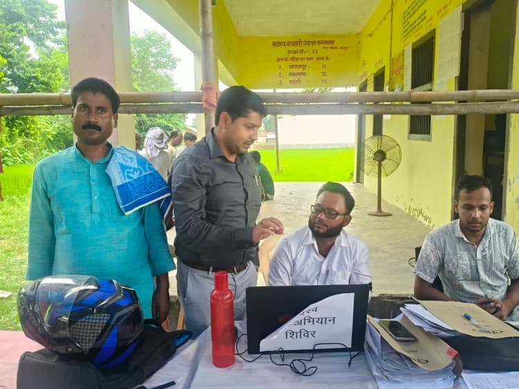 प्रखंड क्षेत्र अंतर्गत कमरगामा पंचायत भवन में राजस्व महाअभियान के तहत सोमवार को शिविर का आयोजन किया गया. अंचलाधिकारी नवीन कुमार सिंह ने निरीक्षण किया. वहीं शिविर प्रभारी सह राजस्व कर्मचारी उमर अंसारी को दिशा निर्देश दिये. सीओ ने बताया गया कि महाअभियान के प्रथम चरण में घर-घर जाकर जमाबंदी पंजी का वितरण एवं शिविर लगाया गया है. इसमें रैयतों के द्वारा आवेदन प्राप्त किये जा रहे हैं. उनका ऑन स्पॉट निबंधन किया जा रहा है.बताया कि रैयत जमाबंदी में त्रुटि में सुधार, छूटी हुई जमाबंदी को ऑनलाइन करना, उत्तराधिकार नामांतरण, बंटवारा नामांतरण में आवेदन कर सकते हैं. सीओ ने बताया कि अंचल सिंहेश्वर अंतर्गत सभी पंचायतों में चार दिन कैंप किया जाना प्रस्तावित है. उक्त शिविर में रैयत उपस्थित होकर अपने आवेदन जमा कर सकते हैं. मौके पर राजस्व कर्मचारी मुखिया जयकृष्ण शर्मा, कार्यपालक राजू सरदार, किसान सलाहकार राणा संग्राम सिंह, विकास मित्र तेजनारायण ऋषिदेव, साजेश कुमार, वार्ड सदस्य संतोष कुमार आदि उपस्थित थे.डिस्क्लेमर: यह प्रभात खबर समाचार पत्र की ऑटोमेटेड न्यूज फीड है. इसे प्रभात खबर डॉट कॉम की टीम ने संपादित नहीं किया है