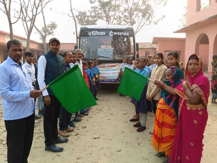नयानगर. उदाकिशुनगंज प्रखंड क्षेत्र अंतर्गत मध्य विद्यालय, नयानगर के बच्चे शुक्रवार को मुख्यमंत्री शैक्षणिक परिभ्रमण योजना के तहत भ्रमण के लिए मंदार रवाना हुए. परिभ्रमण दल को विद्यालय के अध्यक्ष लडुअन देवी एवं प्रभारी प्रधानाध्यापक इंद्रमोहन मंडल ने रवाना किया. प्रभारी प्रधानाध्यापक इंद्रमोहन के नेतृत्व में बच्चे ने मंदार सहित अन्य स्थलों का भ्रमण करेंगे. प्रधानाध्यापक ने बताया कि इस प्रकार के शैक्षणिक परिभ्रमण से छात्रों का ज्ञान विकसित होता है. मौके पर शिक्षक उमेश दास, मनीष कुमार, रामबालक, विद्यालय के सचिव उषा देवी, रसोईया रेखा देवी, बुलबुल देवी आदि मौजूद थीं.