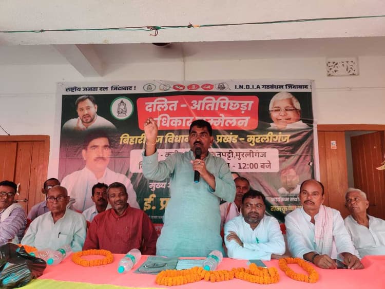 मुरलीगंज. प्रखंड क्षेत्र अंतर्गत रतनपट्टी स्थित कबीर आश्रम में राष्ट्रीय जनता दल के द्वारा “दलित-अतिपिछड़ा अधिकार सम्मेलन ” का आयोजन शुक्रवार को किया गया. कार्यक्रम का उद्देश्य समाज के वंचित, दलित व अति-पिछड़ा वर्गों को उनके अधिकारों के प्रति जागरूक करना व सामाजिक न्याय के संकल्प को दोहराना था. कार्यक्रम की अध्यक्षता दिनेश मंडल व संचालन धीरेंद्र मंडल ने की. मुख्य अतिथि ई प्रभाष कुमार ने कहा कि दलित, महादलित और अतिपिछड़ा समाज के बिना बिहार की राजनीति अधूरी है. आज भी ये वर्ग अपने हक और हिस्सेदारी के लिए संघर्ष कर रहे हैं. अतिपिछड़ा वर्ग के उत्थान, विकास, बेहतरी और कल्याण के लिए राजद दृढ़ संकल्पित है. ये डबल इंजन की सरकार तेजस्वी यादव के कार्यकाल में बढ़ायी गयी 65 प्रतिशत आरक्षण सीमा को संविधान की नौवीं अनुसूची में शामिल नहीं कर इस वर्ग को अत्यधिक नुकसान कर रही है. हमारा लक्ष्य है तेजस्वी यादव को मुख्यमंत्री बनाना और बिहार में एक सशक्त, समावेशी सरकार बनाना. अगर राजद की सरकार बनी तो वफ्फ बोर्ड कानून को बिहार में किसी भी परिस्थिति में लागू नहीं होने दिया जायेगा. ई प्रभाष ने कहा कि बिहारीगंज विधानसभा की जनता वर्षों से उपेक्षित है. यहां की सड़कें टूटी हैं, युवाओं को रोजगार नहीं, अस्पताल हैं तो डॉक्टर नहीं, स्कूल हैं तो शिक्षक नहीं. इन सब समस्याओं का हल तभी निकलेगा जब हम परिवर्तन करेंगे. विशिष्ट अतिथि पूर्व विधायक अमित कुमार भारती ने कहा कि राजद की राजनीति सत्ता के लिए नहीं, सामाजिक बदलाव के लिए है. कार्यक्रम संयोजक रामकृष्ण मंडल ने कहा कि यह सम्मेलन केवल एक राजनीतिक आयोजन नहीं, बल्कि सामाजिक चेतना का मंच है. मौके पर पूर्व मुखिया जीवछ मंडल, सीताराम मंडल, दयानंद शर्मा, सीपीआई नेता अनिल भारती,बिकेंन मंडल, सुखदेव राम,बैजनाथ टुड्डू, दिनेश मंडल, नूतन मुर्मू, ज्योति रजक, महेन्द्र मंडल,नन्दू ऋषिदेव,मंटू दास,पूनम मंडल,अशोक मोदी,चंदेश्वरी मंडल,श्रवण मंडल आदि उपस्थित थे.