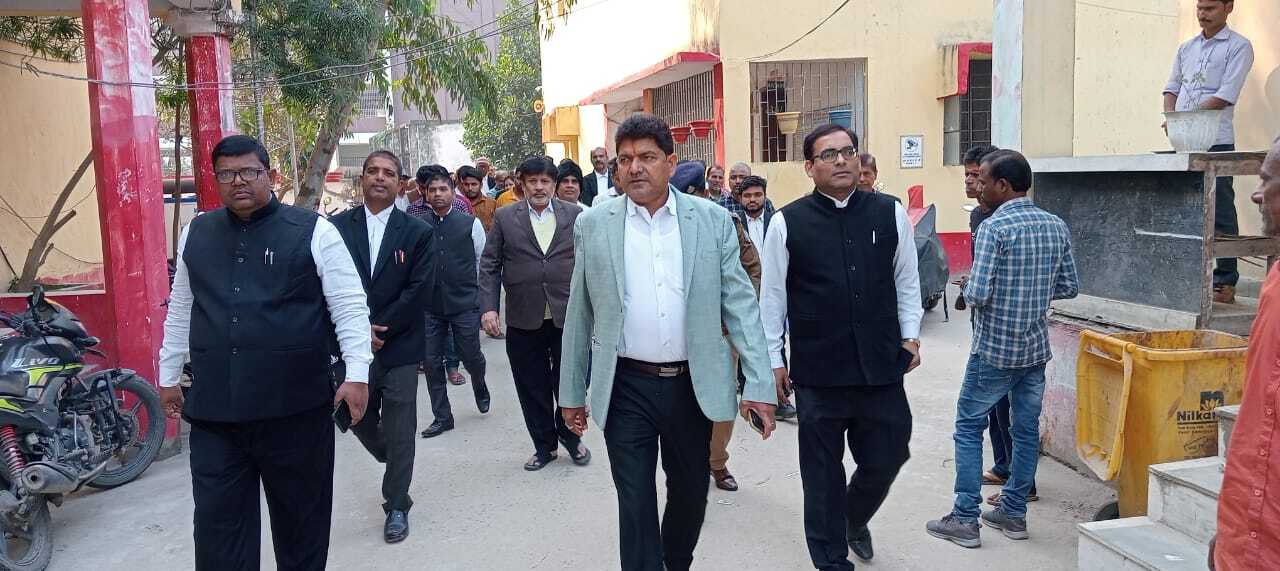 उदाकिशुनगंज /ग्वालपाड़ा . प्रधान जिला जज बलराम दुबे ने शनिवार को व्यवहार न्यायालय उदाकिशुनगंज का निरीक्षण किया. इस दौरान सभी न्यायाधीश व कर्मी मौजूद थे. प्रधान जिला जज ने अधिवक्ता संघ के उपाध्यक्ष महेंद्र ठाकुर, महासचिव परमानंद यादव, वरीय अधिवक्ता श्यामल किशोर यादव, सुमन पाठक, विकास सिंह, सोनी कुमारी, मनजीत कुमार को आगामी 13 दिसंबर को होने वाले लोक अदालत अधिक से अधिक सुलहनीय मामले को समझौता के आधार पर समाप्त करवाने की बात कहीं. मौके पर महासचिव परमानंदन यादव ने अधिवक्ताओं के बैठने के लिए बनाये जाने वाले लोइयर हॉल की काम धीमी गति से किये जाने की शिकायत की. महासचिव ने कहा कि संवेदक के द्वारा एक साल पहले स्टेपनर जमीन से ऊपर खरा कर दिया गया है. जिसे जंग खा रही है तथा गुणवत्तापूर्ण काम भी नहीं हो रहा है. न्यायालय स्थित मीटिंग हॉल में प्रधान जिला जज बलराम दुबे, जिला विधिक सेवा प्राधिकरण के सचिव पूजा कुमारी एसीजेएम शंभु दास, एसडीजेएम सुनील कुमार मिश्रा, मुंसिफ दिनेशमणि त्रिपाठी, जज इंचार्ज सह प्रथम श्रेणी न्यायिक मजिस्ट्रेट सूरज कुमार चौधरी, प्रथम श्रेणी न्यायिक मजिस्ट्रेट रतन कुमार पासवान, एसडीपीओ अविनाश कुमार, अधिवक्ता के साथ लोक अदालत में अधिक से अधिक सुलहनीय मामले को समझौते के आधार पर समाप्त करवाने पर चर्चा की गयी. वहीं पीएलवी को ससमय नोटिस करने का निर्देश दिया. वहीं प्रधान जिला जज ने मंडल उप कारा उदाकिशुनगंज का भी निरीक्षण किया. मौके पर एसडीपीओ अविनाश कुमार मौजूद थे.