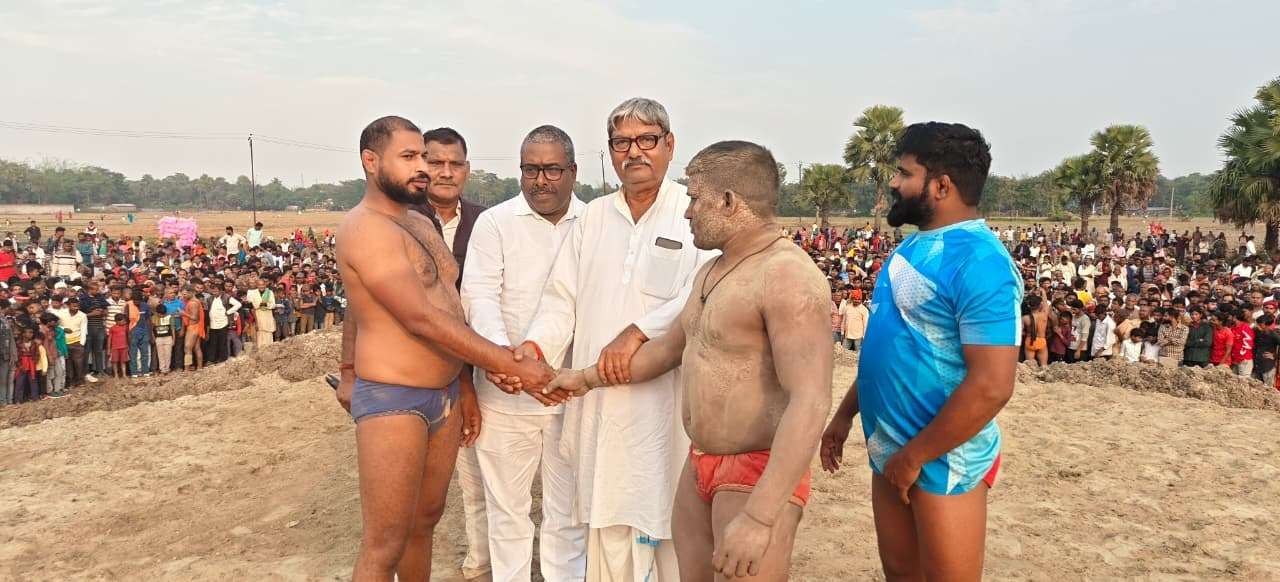 सुखासन नदी घाट पर विवाह पंचमी के मौके पर आयोजित मेला में दूसरे दिन का मुख्य आकर्षक पहलवानो के कुश्ती का दंगल रहा सिंहेश्वर. प्रखंड क्षेत्र स्थित सुखासन नदी घाट पर विवाह पंचमी पर आयोजित दो दिवसीय प्रतियोगिता के अंतिम दिन महिला वर्ग में प्रयागराज की रोशनी को हरा कर बक्सर की शिवांगी विजेता बनी. महिला वर्ग के चौथे राउंड में बनारस की सोनम पांडे और प्रयागराज के रोशनी के बीच काफी रोमांचक मुकाबला हुआ. अंत में सोनम पांडे को पटखनी देकर रोशनी फाइनल राउंड में पहुंची. अंतिम मुकाबले में रोशनी को शिवांगी से हार का सामना करना और वे प्रतियोगिता के महिला वर्ग की उपविजेता बनी. इस बीच महिला दंगल देखने के लिए रिकार्ड दर्शक की भीड़ उमड़ पड़ी. भीड़ को कंट्रोल करने में आयोजन समिति और स्थानीय प्रशासन के पसीने छूट गए इससे पहले चार दिवसीय सुखासन मेला का मुख्य आकर्षण महिला एवं पुरुष पहलवानों के बीच कुश्ती का दंगल प्रतियोगिता रहा. पड़ोसी देश नेपाल सहित विभिन्न राज्यों से आये एक से एक पहलवानों के दांव पेच देख जुटे दर्शक रोमांचित हुये. कुश्ती के दंगल प्रतियोगिता का शुभारंभ पूर्व जिला परिषद सदस्य दिनेश यादव, नप के उप मुख्य पार्षद मो परवेज आलम एवं स्थानीय मुखिया सह मेला कमेटी के संयोजक किशोर कुमार पप्पू, मेला कमेटी के अध्यक्ष रूद्र नारायण यादव, पूर्व विधायक चंद्रहास चौपाल, व्यापार मंडल अध्यक्ष शिवचंद्र चौधरी सहित अन्य ने खिलाड़ियों से परिचय प्राप्त कर किया. वहां इस बीच पहलवानों के हर दांव पेंच पर जमकर तालियां बजी. मुकाबले को देखने के लिए काफी तादाद में दर्शक पहुंचे थे. इस दौरान संयोजक किशोर कुमार पप्पू, अध्यक्ष रुद्रनारायण यादव, उपाध्यक्ष चंद्रशेखर मेहता, सचिव आकाश, उप सचिव अमरेंद्र कुमार चौपाल, कोषाध्यक्ष मो सलाम, उपकोषाध्यक्ष रोशन कुमार, संगठन मंत्री, मुकेश कुमार मुन्ना, नेहरू कुमार, विक्की कुमार हजारों की संख्या में दर्शक मौजूद थे. राजस्थान के टारजन को छपरा के बाबा निर्दोष दास ने हराया प्रतियोगिता के पुरुष वर्ग पहले दौड़ में यूपी कानपुर के अमन पहलवान एवं मधुबनी बिहार के छोटे पहलवान के बीच काफी कड़ा व रोमांचक मुकाबला हुआ. करीब दस मिनट का दोनों एक दूसरे को पटखनी देने के लिए सभी दांव आजमाया, लेकिन दोनों के बीच मुकाबला अनिर्णीत रहा. दूसरा मुकाबला राजस्थान के छोटा डॉन पहलवान एवं बनारस के आजाद पहलवान के बीच हुआ. इसमें आजाद विजेता बने. इस बीच बरेली के चंद्रशेन पहलवान एवं दिल्ली के जुबेद पहलवान के बीच हुआ मुकाबला भी अनिर्णीत ही रहा. तय समय सीमा के भीतर कोई किसी को पटखनी नही दे पाया. इसके बाद निर्णायक ने मुकाबले को बराबरी पर घोषित किया. तीसरे दौर में राजस्थान के टारजन को छपड़ा के बाबा निर्दोष दास ने हराय