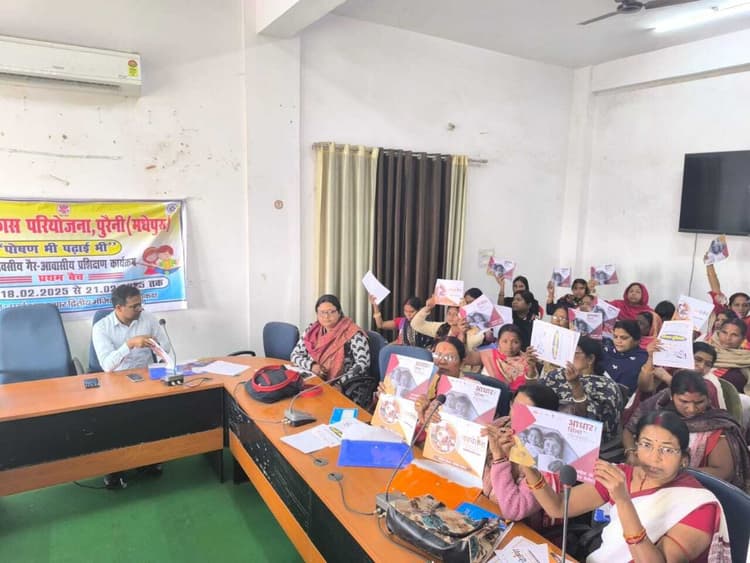 पुरैनी. प्रखंड कार्यालय परिसर स्थित सभागार में मंगलवार को पोषण भी, पढ़ाई भी विषय पर सेविकाओं का तीन दिवसीय गैर आवासीय प्रशिक्षण शुरू हुआ, जिसका शुभारंभ सीडीपीओ राजा प्रताप ने किया. प्रशिक्षण के पहले दिन शून्य से छह वर्ष तक के बच्चों में बौद्धिक विकास गतिविधियों को लेकर नवचेतना विषय पर महिला पर्यवेक्षिका निशा भारती, कोमल रानी ने प्रखंड अंतर्गत कुल 113 आंगनबाड़ी केंद्रों की उपस्थित सेविकाओं को पोषण भी, पढ़ाई भी कार्यक्रम के तहत बच्चों को पोषण के साथ पढ़ाई कैसे कराया जाये, इस बारे में जानकारी दी. विभिन्न गतिविधियों के माध्यम से बच्चों में संज्ञात्मक, सामाजिक, भावनात्मक, शारीरिक व रचनात्मक विकास किया जाना है. कहा कि सेविकाओं को शून्य से तीन वर्ष के बच्चों के लिए गृह भ्रमण व तीन से छह वर्ष के बच्चों के लिए केंद्रों में सेविकाओं द्वारा गतिविधियों के माध्यम से किया जायेगा. मौके पर लिपिक कृष्ण कुमार झा, प्रखंड समन्वयक कुंदन किशन, कार्यपालक सहायक संतोष कुमार मरांडी, सेविका फरजाना खातून, अन्नपूर्णा ज्योति, खुशबु कुमारी, विभा कुमारी, बबीता कुमारी, प्रतीक्षा कुमारी, संजू सुमन, शबनम प्रवीण, रीना कुमारी, रूबी कुमारी, शबनम कुमारी, कुंदन कुमारी, शहनाज बेगम, पिंकी कुमारी, रश्मि किरण, नीतू कुमारी, संगीता कुमारी, नबिना खातून आदि मौजूद थीं.