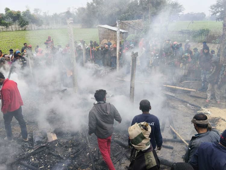 फ़ोटो-मधेपुरा-15-जला हुआ घर प्रतिनिधि, नयानगर उदाकिशुनगंज प्रखंड क्षेत्र अंतर्गत खाड़ा पंचायत के शिनवारा वार्ड 11 में सोमवार को दो घर जल गये. पीड़िता मंजू देवी ने कहा कि घर का सारा सामान जल गया. वहीं पांच बकरियों की झुलसने से मौत हो गयी. पीड़िता बिजली देवी पति कैलाश तांती ने कहा कि बाइक, साइकिल, अनाज, कपड़ा सहित सारा सामान जल गया. वहीं तीन बकरियों की झुलसने से मौत हो गयी. ग्रामीणों ने काफी मशक्कत के बाद आग पर काबू पाया. ग्रामीणों ने बताया कि पीड़ितों के पास अब रहने के लिए घर और रोजमर्रा का कोई सामान नहीं बचा है. ग्रामीणों ने प्रशासन से आर्थिक मदद की मांग की है. इधर, प्रभारी सीओ देव कृष्ण कामत ने बताया कि पीड़ित परिवार को तत्काल राहत सामग्री दे दिया गया है.