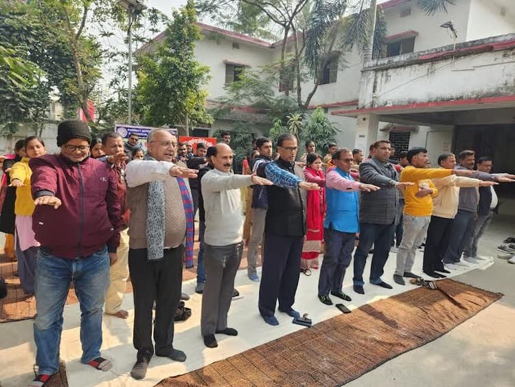प्रतिनिधि, मधेपुरा फिट इंडिया कार्यक्रम के तहत पार्वती विज्ञान महाविद्यालय मधेपुरा परिसर में महाविद्यालय प्राचार्य प्रो अशोक कुमार की अध्यक्षता में गुरुवार को योग व मेडिटेशन कार्यक्रम का आयोजन किया गया. योग व मेडिटेशन कार्यक्रम के द्वारा शारीरिक व मानसिक रूप से स्वस्थ होकर स्वस्थ भारत व विकसित भारत के निर्माण में अपनी महत्वपूर्ण भूमिका के लिए शपथ लिया गया. इस कार्यक्रम में महाविद्यालय के सभी विभागों के प्राध्यापक, एनसीसी कैडेट्स व महाविद्यालय के सभी संकायों के छात्र-छात्राएं उपस्थित थे. फिट इंडिया कार्यक्रम का आयोजन 12 से लेकर 31 दिसंबर तक किया जायेगा. जिसके तहत महाविद्यालय में विभिन्न प्रकार के कार्यक्रम आयोजित किये जायेंगे. फिट इंडिया कार्यक्रम के नोडल अधिकारी अजय अंकोला ने बताया की 14 दिसंबर को दौड़ व फन गेम कार्यक्रम का आयोजन किया जायेगा, जिसमें सफल प्रतिभागियों को पुरस्कृत किया जायेगा.