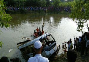 बिहार : मधुबनी में तालाब में बस गिरी, 36 के मरने की खबर, 10 शव बरामद