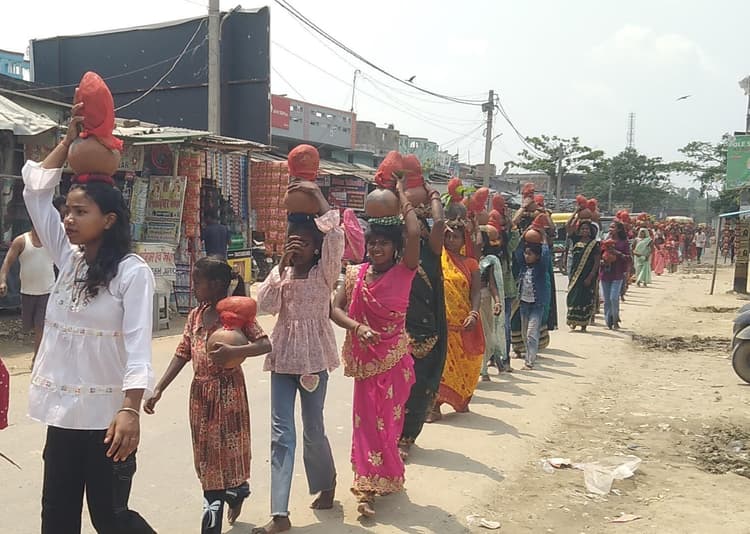 बाबूबरही. थाना क्षेत्र के दुदाही गांव स्थित हनुमान मंदिर परिसर में हनुमान जन्मोत्सव के अवसर पर शनिवार को भव्य कलशयात्रा निकली गयी. कलश यात्रा मंदिर परिसर से निकाल बाबूबरही, मुरहद्दी, अमोला, पीडब्ल्यूडी सड़क के रास्ते पिपरघाट स्थित कमला बलान एवं सोनी नदी के त्रिवेणी संगम तट पहुंची. जहां कलश में जल बोझा गया. बताया गया कि 301 महिलाएं एवं बालाओं ने कलश यात्रा निकाली. मंदिर परिसर में कलश स्थापना के साथ ही सात दिनों के लिए धार्मिक कार्यक्रमों का आगाज हुआ. सदस्यों ने बताया कि प्रतिदिन सुबह कलश पूजन, हनुमान पूजन, संध्या आरती तथा कलाकारों द्वारा भजन संध्या व अंतिम तीन रात आध्यात्मिक नाटक प्रस्तुत किए जाएंगे. मौके पर डॉ. भारती मेहता, रंधीर खन्ना, बिनोद चौधरी, प्रकाश चौधरी, राधाकांत राय, अमन कुमार राय, कृष्ण कुमार राय, रामप्रवेश मंडल सहित अन्य उपस्थित थे. इधर, बिठौनी गांव के प्रवासी कामगारों ने शनिवार से गांव के गहबर स्थान में नवाह संकीर्तन यज्ञ का शुभारंभ किया. यज्ञ प्रारंभ से पूर्व 151 महिलाओं एवं बालाओं ने आकर्षक कलश यात्रा निकाली. कलश यात्रा में सूर्य नारायण यादव, सुखलाल दास, लक्ष्मी महतो, पवन मंडल,संजय पासबान, उपेंद्र यादव, बहादुर महतो, गोपाल मंडल आदि शामिल थे.