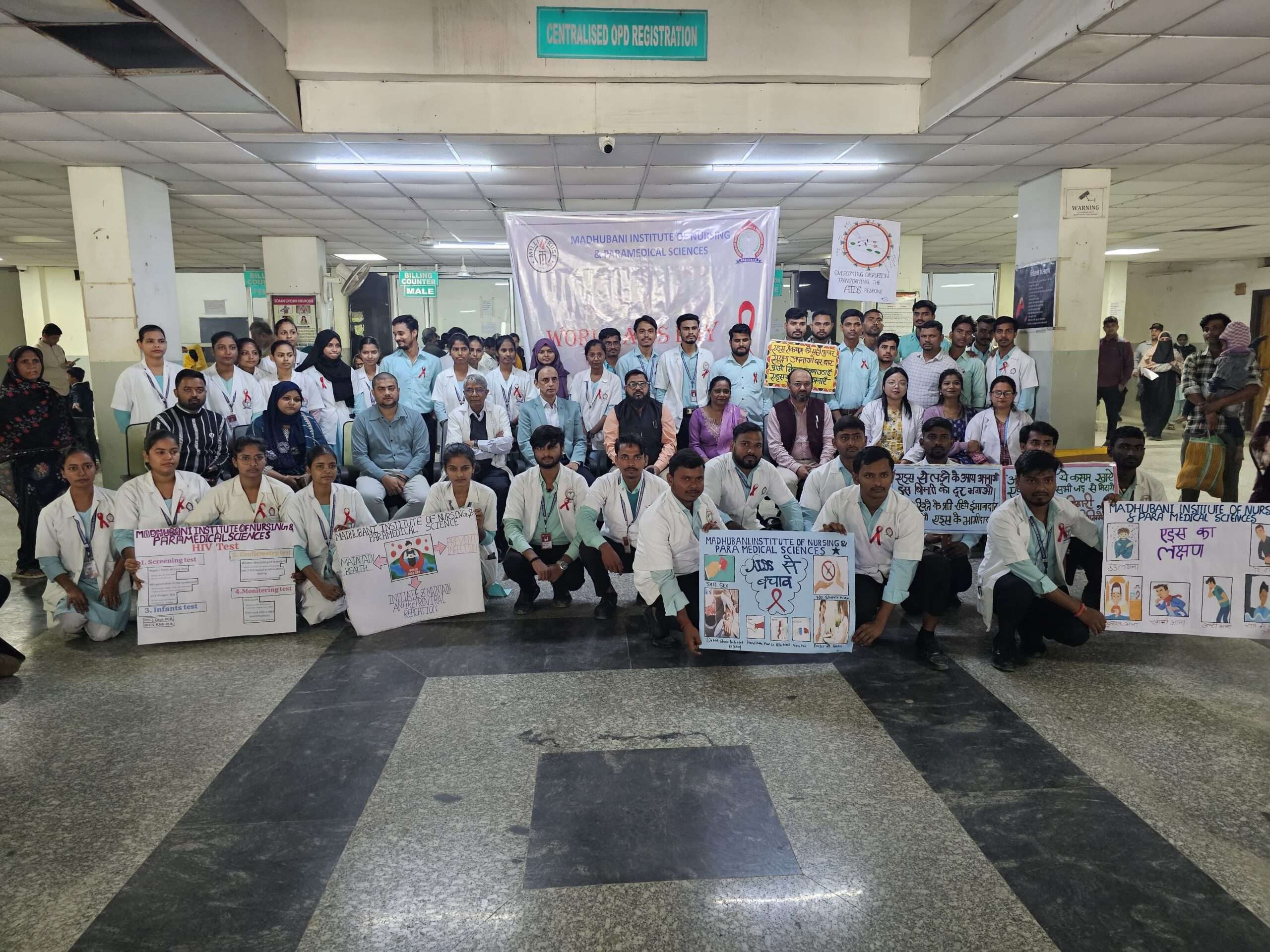 मधुबनी. इंस्टिट्यूट ऑफ नर्सिंग एंड पैरामेडिकल साइंसेज की ओर से विश्व एड्स दिवस पर जागरूकता कार्यक्रम का आयोजन किया गया. इसका उद्देश्य एचआइवी एड्स के प्रति लोगों में जागरूकता फैलाना, भ्रांतियों को दूर करना तथा समाज में भेदभाव और कलंक को समाप्त करना था. इस वर्ष का वैश्विक थीम पर विशेष प्रकाश डाला गया. जिसमें एड्स प्रतिक्रिया को सशक्त बनाने, उपचार की उपलब्धता सुनिश्चित करने और समुदाय की सक्रिय भागीदारी पर जोर दिया गया. कार्यक्रम में स्वास्थ्य जागरूकता व्याख्यान, रिबन कैंपेन, पोस्टर प्रस्तुति, तथा एमएमसीएच के नर्सिंग के छात्रों ने जनजागरूकता रैली का आयोजन किया. वक्ताओं ने सुरक्षित जीवन शैली, नियमित जांच और एचआईवी संक्रमित व्यक्तियों के प्रति सम्मान एवं समर्थन की आवश्यकता पर बल दिया. कार्यक्रम के अंत में सभी ने भेदभाव मुक्त समाज बनाने तथा एड्स के प्रति जागरूकता फैलाने की शपथ ली. संस्थान ने भविष्य में भी ऐसे स्वास्थ्य संबंधी कार्यक्रमों को जारी रखने का संकल्प लिया. इस अवसर पर मधुबनी मेडिकल कॉलेज के प्रबंध निदेशक तौसीफ अहमद ने कहा कि एड्स बीमारी होने पर मरीज के साथ कोई भेद भाव करने से मरीज मानसिक रूप से कमजोर हो जाता है. नियमित इलाज से बीमारी में सुधार होने की पूर्ण संभावना रहता है. इस लिए बीमारी का पहचान हो जाए तो तुरंत इसका इलाज करवाना चाहिए.