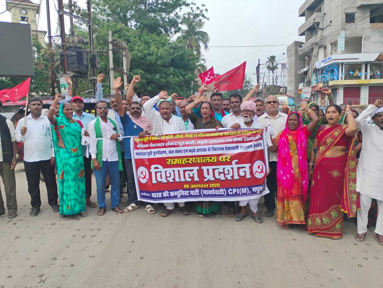 मधुबनी. माकपा कार्यकर्ताओं ने शुक्रवार को अपनी मांगों के समर्थन में समाहरणालय के समक्ष प्रदर्शन किया. प्रदर्शनकारी माकपा कार्यकर्ता कमिटी मतदाता गहन पुनरीक्षण, सूबे में बढते अपराध की घटनाओं पर रोक लगाने, मधुबनी जिले को सुखा क्षेत्र घोषित करने की मांग करते हुए शहर में जुलूस भी निकाला. जुलूस स्टेशन से निकाल कर समाहरणालय के समक्ष पहुंचकर सभा में तब्दील हो गयी. प्रदर्शनकारियों का नेतृत्व सीपीएम के राज्य सचिव मंडल सदस्य रामपरी देवी व जिला सचिव मनोज यादव ने किया. समाहरणालय के समक्ष सभा को संबोधित करती हुई पार्टी की राज्य सचिव मंडल सदस्य रामपरी देवी ने कहा कि चुनाव आयोग अमित शाह और मोदी के इसारे पर वोटबंदी कर रहा है. बिहार में विधानसभा चुनाव में भाजपा गठबंधन पराजित होने के डर से एसआइआर के माध्यम से गरीबों, महिलाओं और अल्पसंख्यकों का नाम वोटर लिस्ट से काट रही है. बड़े पैमाने पर जिवित लोगों को मृत और मृत को जिंदा घोषित किया जा रहा है. एनडीए के राज में हत्या, बलात्कार लूट की घटनाएं बढ़ी है. जिला सचिव मनोज यादव ने कहा कि मधुबनी जिले को सूखा क्षेत्र घोषित किया जाए. उन्होंने कहा कि नल जल योजना फेल है. चापाकल सूख गया है. मौके पर रामजी यादव, शशिभूषण यादव, राणा प्रताप, राम लखन यादव, सत्यनारायण यादव, उमेश राय, सुमित्रा देवी, बिंदु यादव, विजय पासवान, रामकृष्ण यादव, रामनारायण यादव, रेखा देवी भी मौजूद थीं.