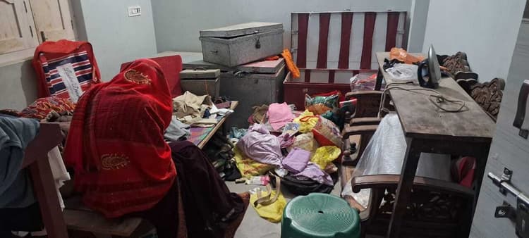 बेनीपट्टी. स्थानीय थाना के बसैठ में पीजीआरओ कार्यालय के होमगार्ड जवान के बसैठ स्थित आवासीय घर में बुधवार की रात अपराधियों ने पिस्टल का भय दिखाकर लूटपाट की. लोक शिकायत निवारण कार्यालय बेनीपट्टी में बसैठ गांव निवासी उपेंद्र प्रसाद होमगार्ड जवान के रूप में कार्यरत हैं. वे अपनी पत्नी कांति देवी के साथ एक कमरे में सोये हुए थे. दूसरे कमरे में उनके पुत्र संतोष कुमार साह और पुत्रबधू कविता देवी भी सोई थीं. रात के करीब 2 बजे के आस-पास तीन अपराधी घर के पीछे की चहारदीवारी फांदकर आंगन में घुस गये. दीवार किनारे लगे चापाकल को खोलने लगे. साथ ही आंगन में रखी सीढ़ी को अपराधियों ने चहारदीवारी के बीच मे रख दिया था. आवाज सुनकर होमगार्ड व उनकी पत्नी की नींद खुल गई. उनकी पत्नी कांति देवी ने बल्ब जलाया और कमरे का गेट खोलकर बाहर निकलीं. जैसे ही वह आंगन में निकली तो देखा कि एक व्यक्ति खड़ा है. दूसरा चापाकल खोल रहा है. उन्होंने पूछा कि आपलोग कौन हो और चापाकल क्यों खोल रहे हो. एक दीवार की ओट में छिपा तीसरा अपराधी होमगार्ड की पत्नी के पास आकर पिस्टल तान दिया. कहा कि शोर करोगे तो गोली मार देंगे. इसी क्रम में शोरगुल सुनकर होमगार्ड खुद व दूसरे कमरे में सो रहे उनके पुत्र व पुत्रबधू भी वहां पहुंच गया. इसके बाद तीनों अपराधी गृहस्वामी सहित चारों सदस्यों को पिस्टल के नोक पर कमरे एक में ले जाकर बंद कर दिया. दो कमरे गोदरेज, ट्रंक, आलमीरा, पेटी बक्सा व ट्रंक आदि तोड़कर 25 हजार रुपये नकदी व सभी जेवरात लूट लिये. इसके बाद घर में लगी गृहस्वामी के बाइक लगी देख चाभी मांगी. घर के दूसरे गेट के सहारे बाइक लेकर चलते बना. पीड़ित गृहस्वामी व उनकी पत्नी ने बताया कि तीन अपराधियों में एक के हाथ में पिस्टल था. दूसरे के हाथ में लोहे का रॉड और तीसरे अपराधी के हाथ में चापाकल का हैंडल था. गृह स्वामी ने बताया कि अपराधियों ने सास व पुत्रबधू के 5 भर वजन का सोने का जेवरात व चांदी के हंसुली, कोड़ा, पायल, पहुची, दो से तीन मोबाइल व 25 हजार रुपये नकदी समेत करीब 5 से 7 लाख रुपये की संपत्ति लूट कर ले गये. मौके पर पुलिस पहुंच छानबीन में जुट गयी. गुरुवार की सुबह स्थानीय लोगों ने जब होमगार्ड के घर से अपराधियों द्वारा लूटी गई बाइक डीकेबीएम एसएच 75 मुख्य सड़क पर बसैठ चौक से उत्तर लोहा पुल के पास सड़क किनारे लुढ़के देखा तो इसकी सूचना पीड़ित परिवार को दी. गृहस्वामी ने बाइक संबंधित सूचना बेनीपट्टी थाना पुलिस को दी. इसके बाद पुलिस उक्त बाइक को वहां से उठाकर थाने ले आयी. घटना की जांच पड़ताल में जुटी है. गौरतलब हो कि घटना स्थल से महज 200 फुट की दूरी पर पुलिस कैंप भी है. इसके बावजूद अपराधी इस तरह लूटपाट की घटना को अंजाम देकर निकल गये. बीते वर्षों में भी बसैठ चौक के पास चोरी और लूट की कई घटनाएं