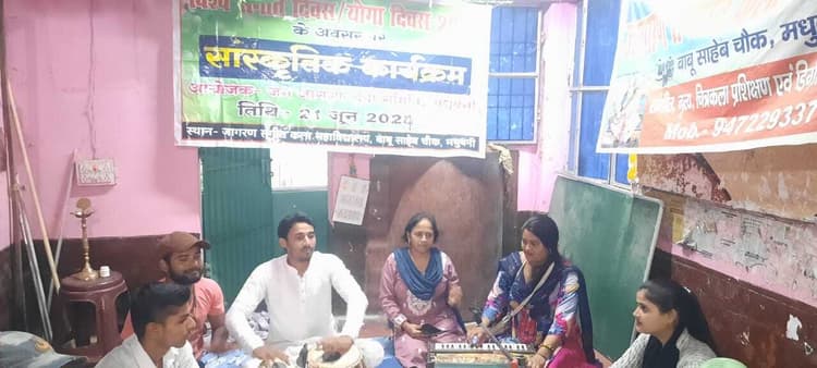 मधुबनी. विश्व संगीत दिवस के अवसर पर बीते शुक्रवार की शाम जागरण संगीत कला महाविद्यालय बाबू साहब चौक में संगीत संगोष्ठी व सांस्कृतिक कार्यक्रम का आयोजन किया गया. कार्यक्रम का उद्घाटन राजकीय शिक्षक सम्मान से सम्मानित संगीत शिक्षक डॉ. शिव नारायण मिश्रा एवं संगीत शिक्षिका प्रेरणा कुमारी ने दीप प्रज्वलित कर किया. इस अवसर पर शीतल, मानसी, रूपांजलि, चंदा ने स्वागत गीत प्रस्तुत की. कार्यक्रम में दीपू कुमार, तुलसी कुमारी, विवेक कुमार, रेणु कुमारी, शिवांश मिश्रा, प्रद्युम्न मिश्रा, कमलेश कुमार झा, रेणु कुमारी, पूजा कुमारी सहित कई कलाकारों ने एक से बढ़कर एक गीत प्रस्तुत कर कार्यक्रम में चार चांद लगा दिया. मंच संचालन वंदना कुमारी ने की.